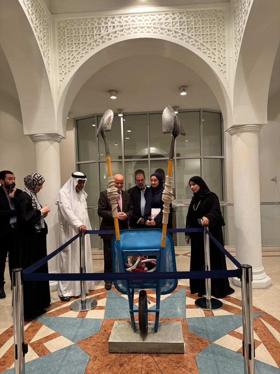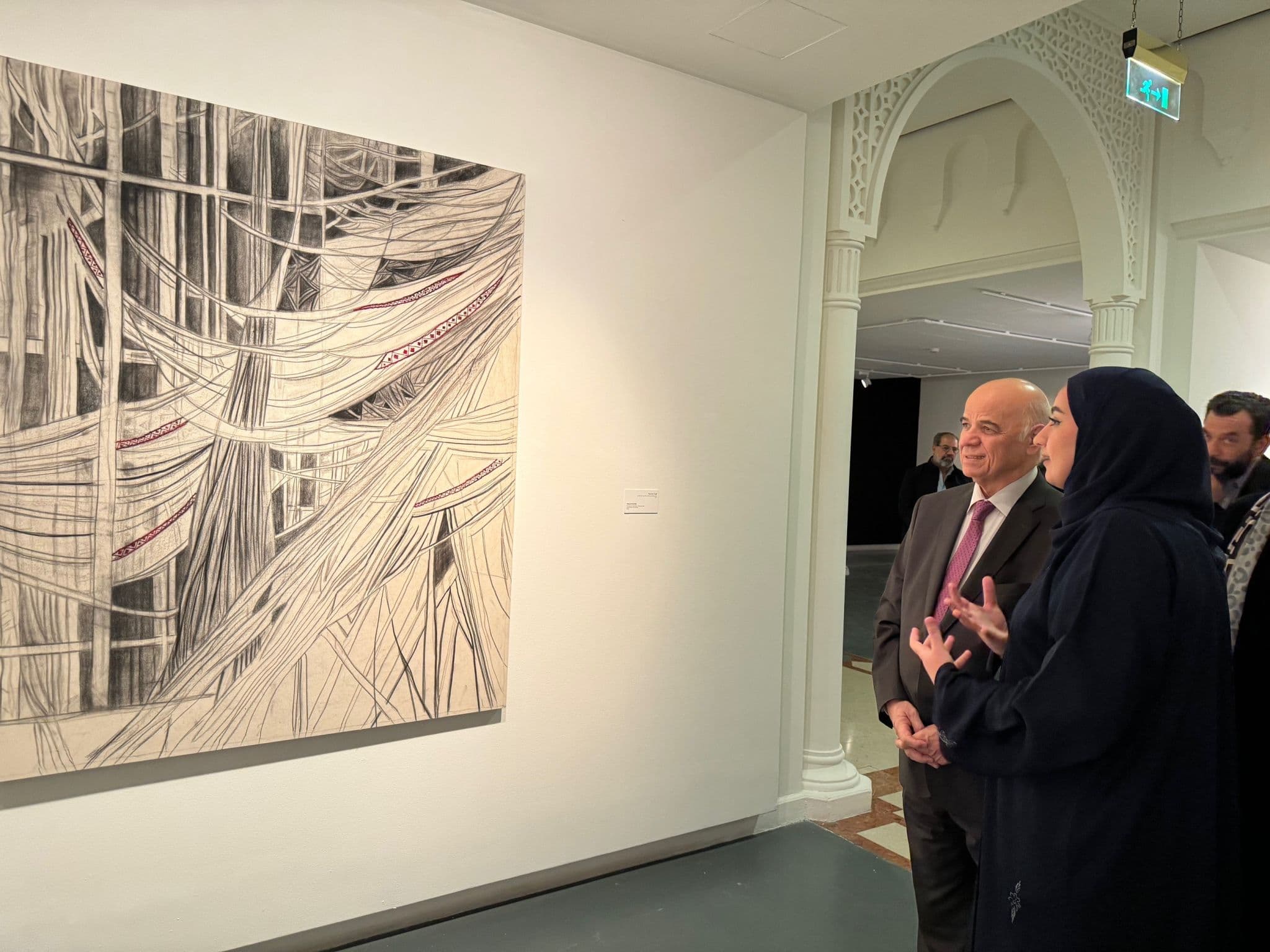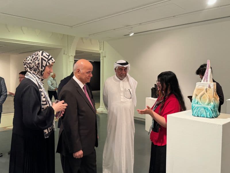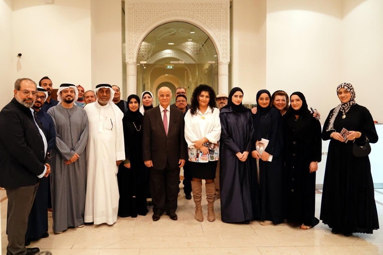 “Anticipation" is the theme for the 39th Annual Exhibition of the Emirates Fine Arts Society, inaugurated by Sheikh Salem bin Abdul Rahman Al Qasimi, and held at the Sharjah Art Museum. Among the 55 artists exhibiting their works were CFAD Faculty Dr. Karima Al-shomely (Assistant Professor in Fine Arts) and Mr. Ahmad Manar Laham (Lecturer in Visual Communication). They were joined by fine art students Mariam Alkhoori, Haya Hosnia, Divyaaunshi Purohit, Fatima Omar, Rawan Mohi, and Sara Nezar who exhibited studio projects in ceramics, painting and printmaking. The President of the Society's Board of Directors, Dr. Mohammed Yousef (Assistant Professor in Fine Arts), also invited the Chancellor of the University of Sharjah, Professor Hamid M. Al Naimiy, and led a special tour for His Excellency to meet with few artists and students. Dr. Yousef emphasized the importance of nurturing young talent and providing the right venues for the future artists to engage with the professionals.