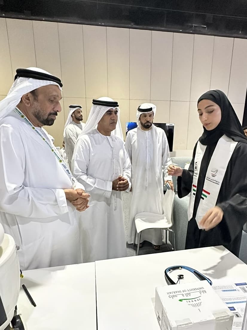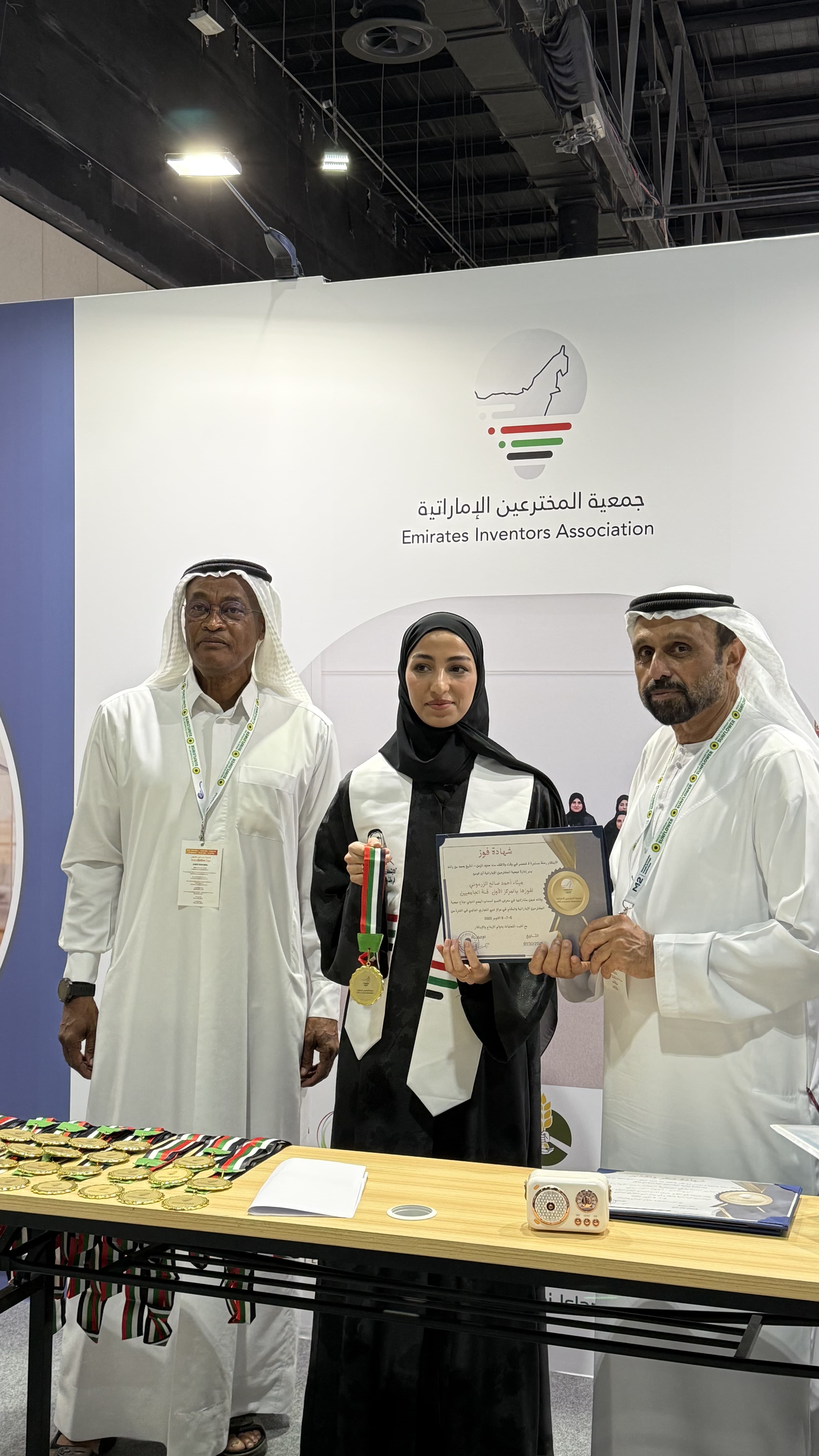 The innovative project, designed to translate brain signals into words and support individuals with speech impairments, was showcased at the Emirates Inventors Association pavilion. The event was held under the patronage and presence of H.H. Sheikh Ahmed bin Saeed Al Maktoum, and was attended by Eng. Ahmed Majan, President of the Emirates Inventors Association.