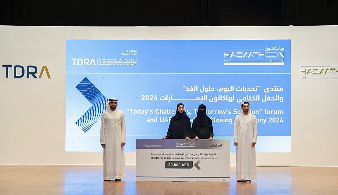Our students Maitha Ahmed Saleh Mohamed Alzarooni and Shaima Ahmed Saleh Mohamed Alzarooni have won the third-place prize in the UAE's hackathon - Entrepreneurs Track. The students participated with their project named 'Tawasul (smart gloves)' that translates sign language into text and speech messages. The event is the biggest hackathon in the UAE, organized by TDRA (The Telecommunications and Digital Government Regulatory Authority). The theme of the hackathon was 'Eliminating Government Bureaucracy' to receive ideas to simplify and reduce government procedures and to eliminate unnecessary procedures and requirements. Tawasul suits the theme because it eliminates unnecessary procedures and requirements, facilitating communication between impaired individuals and others in government and customer services. The prize distribution ceremony was honored by HH Sheikh Saood bin Sultan Al-Qassimi, the General Director of the Sharjah Digital Department, and H.E. Eng. Majid Almesmar, the General Director of TDRA.