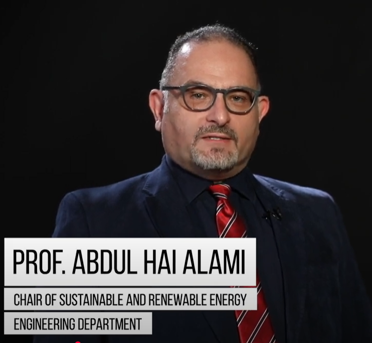 Prof. Abdul Hai Alami research focuses on mechanical energy storage in compressed air. A compressor is operated using renewable resources to pressurize air in storage tanks when supply exceeds demand. Once demand is high the system is discharged into an air motor which is coupled with an electric generator and hence electricity is released. The decompressed air creates a cooling effect that can be utilized in expansion cooling.
