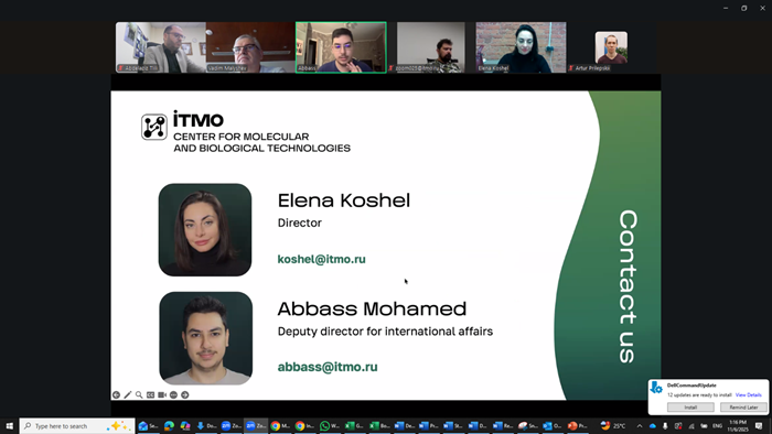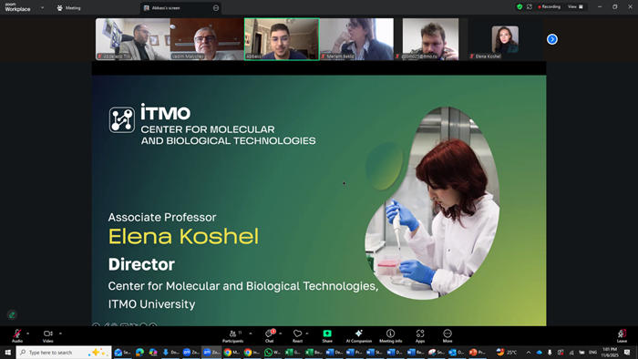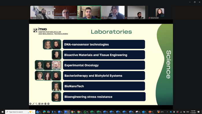 The Department of Applied Biology held an online meeting with the ITMO University team to explore opportunities for academic and research collaboration. Faculty members from various scientific disciplines, along with the Department Chair and program coordinators, participated in the discussion. The meeting was productive, highlighting potential avenues such as student training placements, dual M.Sc. and Ph.D. programs, and collaborative research initiatives. Further steps are now being coordinated to move these collaborations forward.