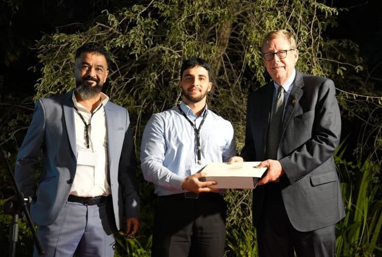 Mr. Abdel Rahman Marwan Mousa Allan, an undergraduate student in the Department of Applied Physics and Astronomy, College of Sciences at the University of Sharjah, won the Best Poster Award for his senior project work 'Tuning SERS activities of pyramidal-nanowire/silver chemo-sensors for effective detection of multi-hazardous pollutants' at the Frontiers in Materials Science and Engineering (FMSE) conference organized by the American University of Sharjah, UAE, from February 13 to 15, 2024. He is an active researcher in the Center for Advanced Materials Research Laboratory under the supervision of Dr. Mounir Gaidi and Dr. Kais Daoudi.