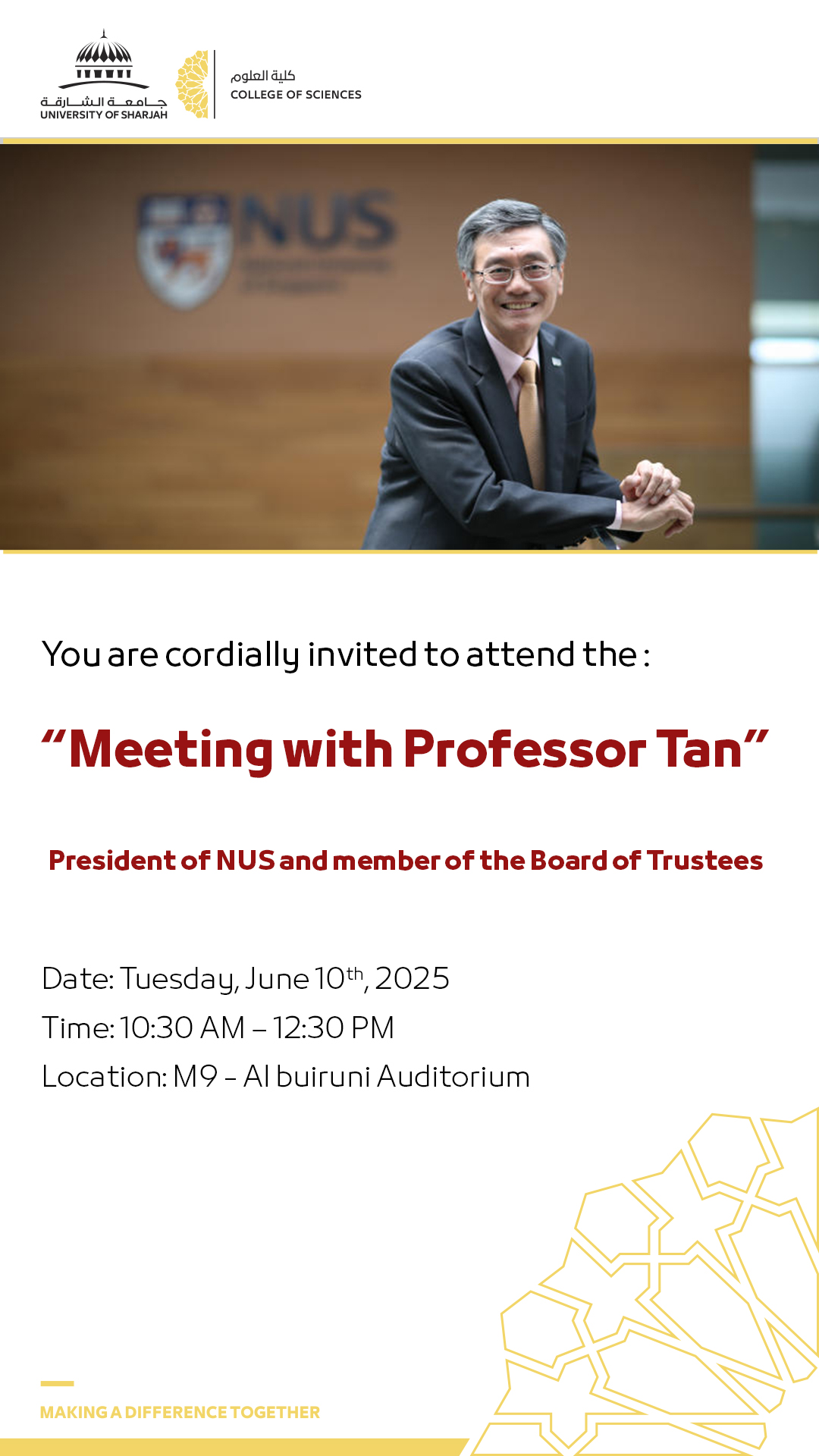 Meeting with Professor Tan, President of NUS and member of the Board of Trustees