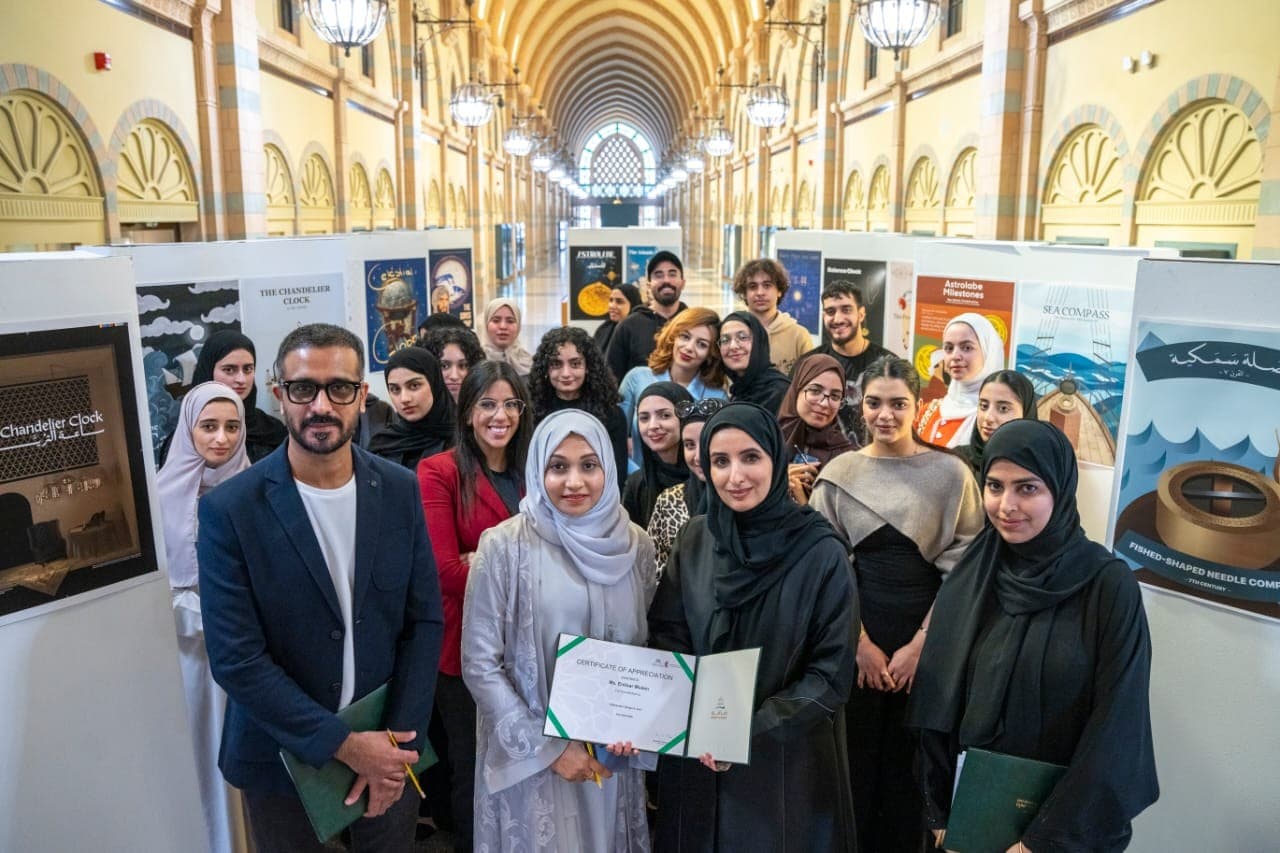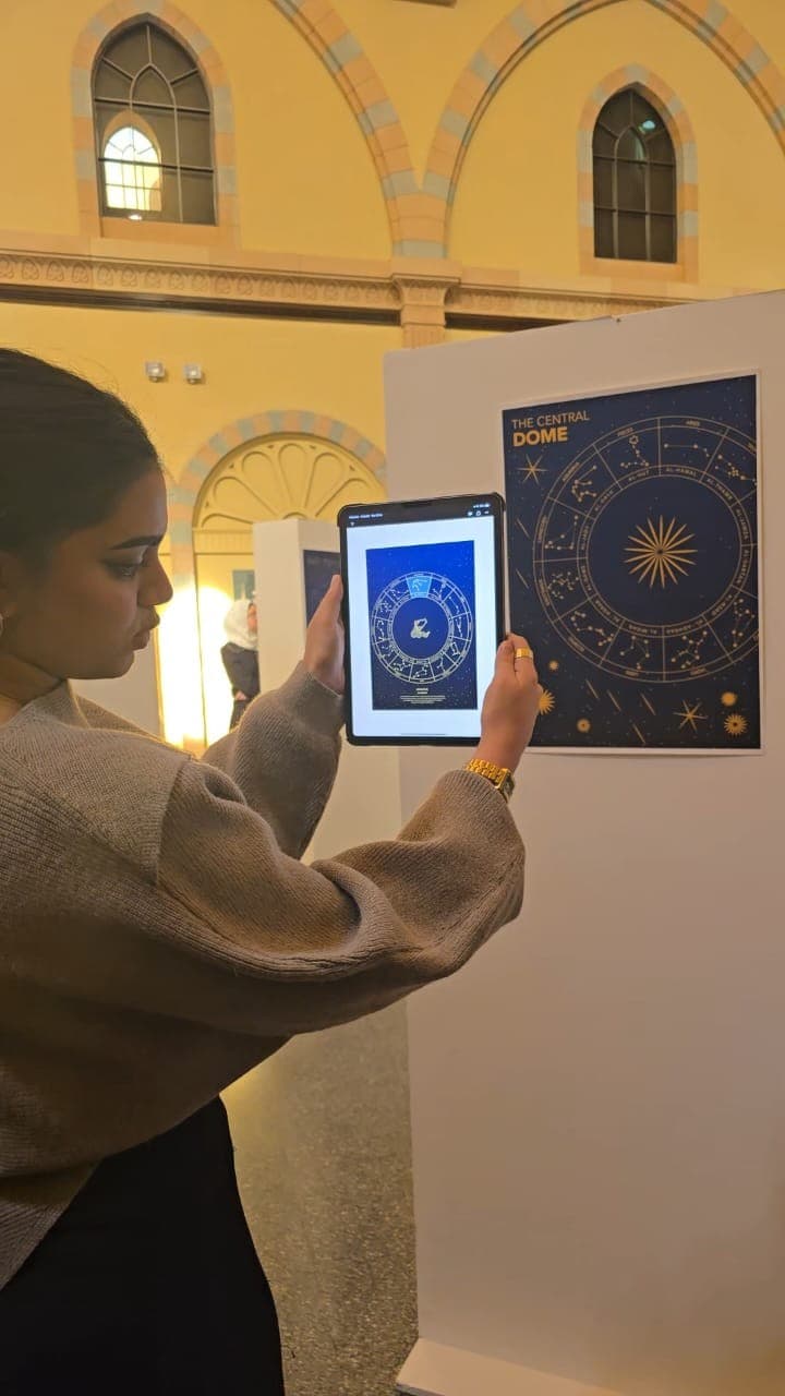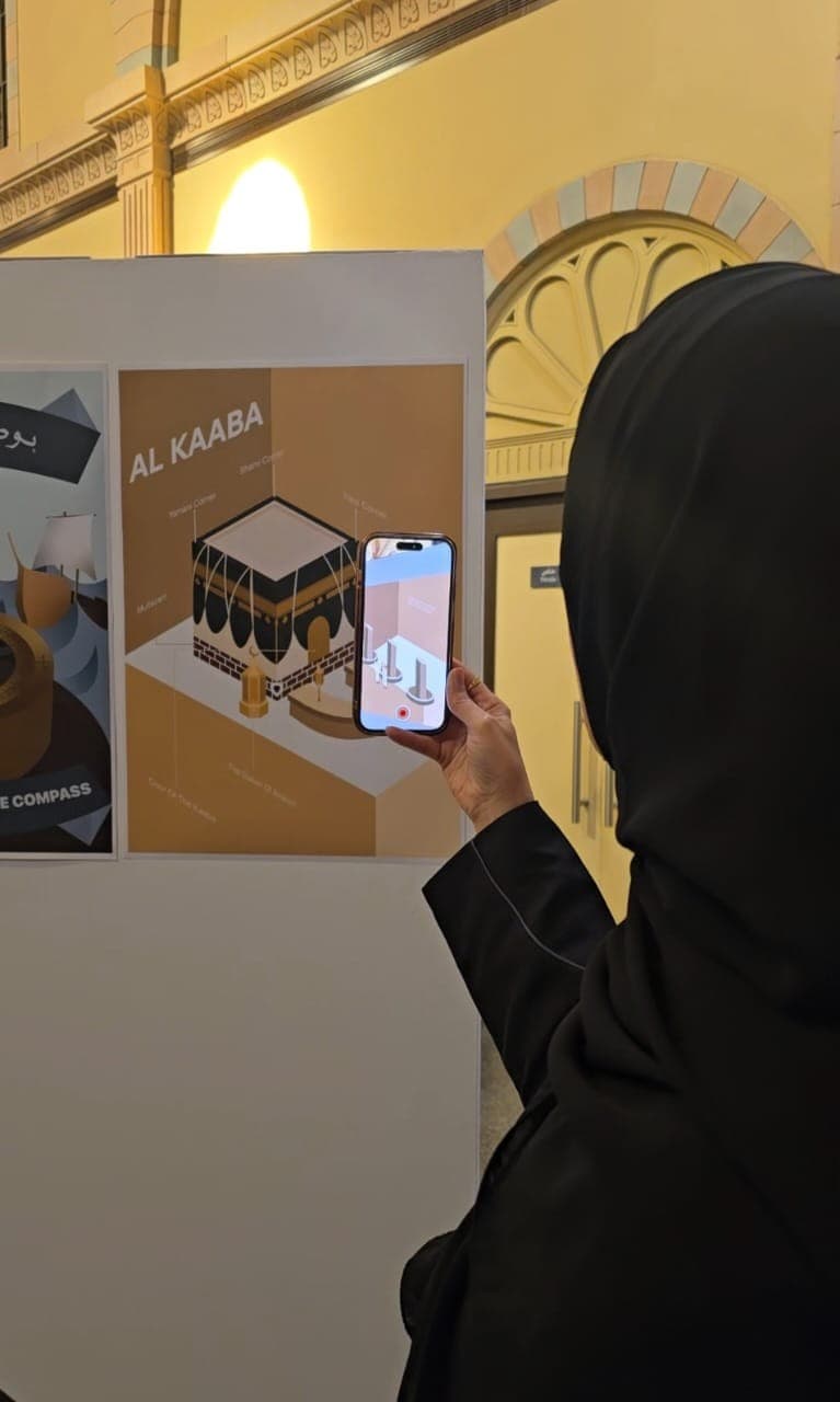 “Bridging Centuries: An Augmented Journey through Islamic Civilization” is the theme of the latest partnership between Sharjah Museums Authority and College of Fine Arts and Design. The Exhibit was a collaboration between the Sharjah Museum of Islamic Civilization and Department of Applied Design. In the intersection of technological innovation and cultural heritage, this augmented reality (AR) exhibition reimagines how we experience and understand the rich tapestry of Islamic civilization. Visual Communication seniors worked on this AR project as part of their “Interaction Design II” studio under the supervision of Visual Communication Lecturers Madiha Jamil and Asad Iqbal. Through strategic digital annotations, 3D reconstructions, and interactive storytelling students created an intuitive and profound journey that allowed visitors of all ages to connect deeply with the extraordinary legacy and bring innovative perspectives to this transformative museum experience. External jurors from the Sharjah Museum Authority were present at the exhibit opening to engage in the work and provided constructive feedback. We extend special appreciation to Museum Director Ms. Intisar Al-Obaidli and staff who welcomed the collaboration and facilitated students visits during the research phase.