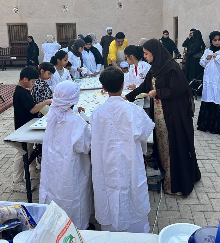 CFAD continues its collaboration with Sharjah Heritage Museum to organize activities in conjunction with the ongoing exhibit “Reflections and Inspirations from Emirati Heritage.” The latest four activities included two lectures and two workshops. Dr. Ousama Lazkani’s lecture (Assistant Professor of Visual Communication), “Visual Storytelling Through Cultural Motifs: Transforming Traditional into Tangible”, explored how cultural motifs function as visual storytelling devices, carrying the weight of history, identity, and collective memory. Drawing from visual communication students' work, the presentation investigated the semiotics of motifs, their evolution in design, and their role in heritage preservation. The second lecture by Dr. Hala Georges (Assistant Professor of Visual Communication) was entitled “Reimagining Heritage: Visual Narratives of Sharjah Through Young Designers' Eyes”. It was a curated showcase of visual communication students' work, highlighting their creative interpretations of Sharjah's rich heritage. Through extensive research and critical analysis, the young designers have explored cultural narratives and motifs, alongside historical influences, transforming their findings into visual expressions and products. Meanwhile, Artist and Fine Arts Tutor Thaier Helal led a two-day workshop themed “Contemporizing Heritage” with the objective of connecting the younger generation with Emirati heritage by recomposing elements from their heritage in a contemporary form. The workshop incorporated memories of traditional fabrics and woven straw hand fans onto large-scale canvases, resulting in abstracted artwork. While Artist Unaiza Ismail (Printmaking Lab Officer) led a hands-on workshop introducing participants to the art of handmade papermaking. Participants learnt how to recycle paper fibers into new sheets, experiment with textures and inclusions, and explore sustainable practices in papermaking. Sharjah Heritage Museum Director Ms. Noura Almoughanni was delighted with the outcomes of the collaboration as evidenced by the number of lecturers attendees and workshops participants. She commented on the public’s interaction and engagement in these activities. The exhibit continues to receive visitors until April.