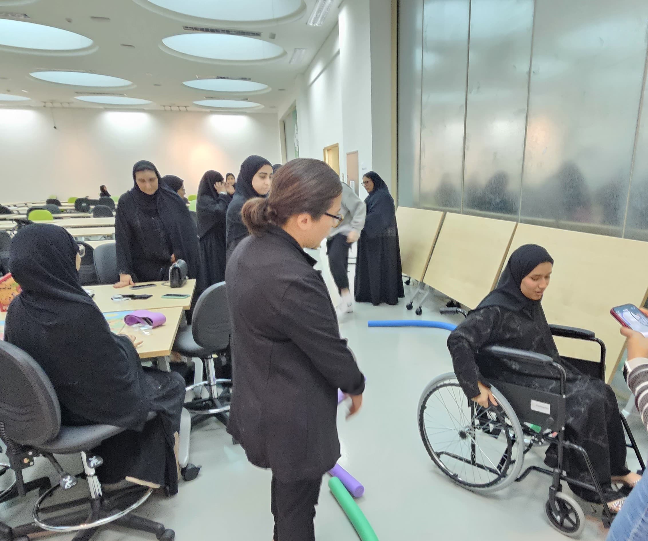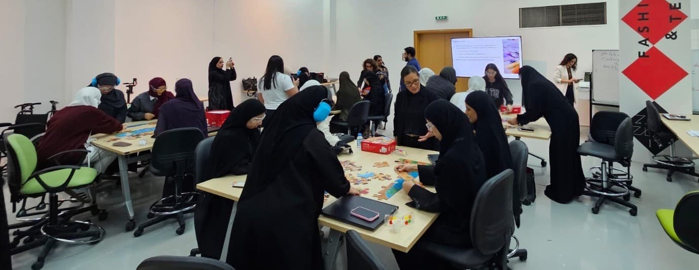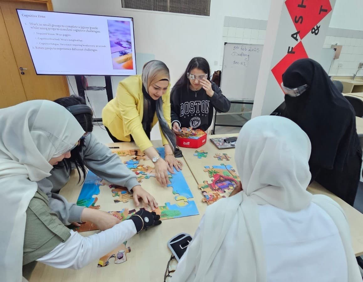 CFAD partnered with the National Multiple Sclerosis Society (NMSS) to deliver an “Empathy Workshop” part of their Universal Design for Inclusion Program. NMSS’s Program “aims to raise awareness among university youth about Cognitive, Mobility and Communication challenges people of determination face in their day-to-day lives.” The Program invited university students across the UAE “to leverage their creativity and technical skills to design an assistive technology that enhances accessibility, improves daily living and fosters greater independence.” Winners of the on-going competition shall be announced in each category (Mobility, Communication, and Cognitive) later. “Sustainable Interior Environments” students led by Dr. Iman Ibrahim (Associate Professor in Interior Design) and “Interaction Design I” students led by Ms. Madiha Jamil (Lecturer in Visual Communication) are joining efforts to propose solutions. Program Manager Lina Juma noted that the NMSS team was “thrilled with how engaged and visibly impacted the students were by the activities”. The workshop was part of CFAD’s continued efforts to ensure that universal design is fully integrated in all design projects.