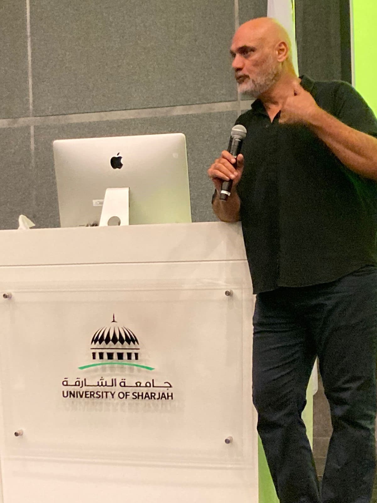 CFAD faculty hosted Tarek Abou El Fatouh (Senior Curator and Director of the Performance Department, Sharjah Art Foundation and a Member of CFAD’s College Advisory Council) to share his curating experience. He is best known for curating the public art works at Expo 2020, Dubai. His presentation highlighted various aspects of the project, starting from his curatorial strategies, discussion with artists, artistic creation and final realization of the artworks in the public spaces. He also visited the Fine Arts Studio and provided feedback to Year III Fine Art Students who discussed their Painting Projects on display. Abou El Fatouh was recently appointed as the Curator for the UAE National Pavilion in the upcoming 60th Venice Art Biennale.