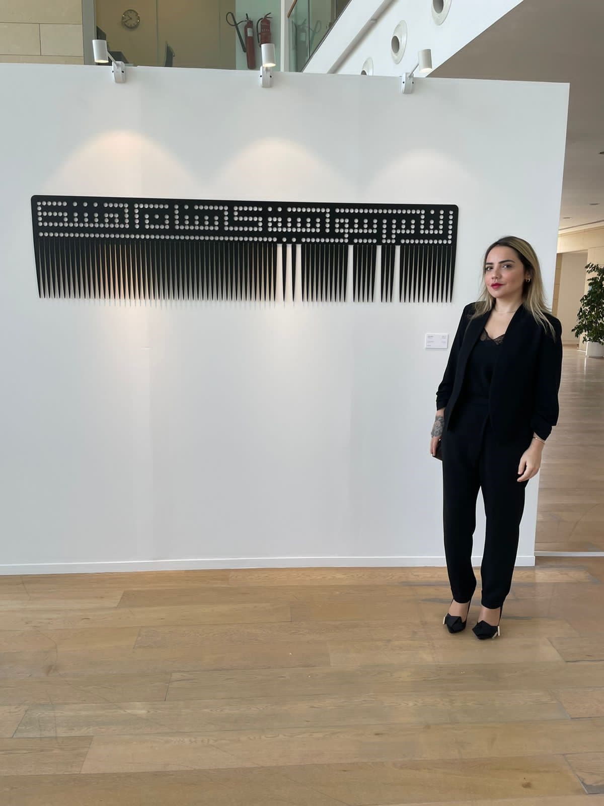 Assistant Professor Nada Abdallah and Visual Communication Senior Hessa Yousif Al Zarooni are both participating in the inaugural Dubai Calligraphy Biennale. Abdallah’s project “Sawasiya” is a modern take on Kufic Calligraphy forming Prophet Muhammad’s (PBUH) saying “People are equal like the teeth of a comb.” Al Zarooni’s submission, an Emirati proverb, “The one who knocks at the door gets the answer” applies “mgbid,” a contemporary bilingual font.” The work was part of her coursework for “Typography III” under the supervision of Nada Abdallah.