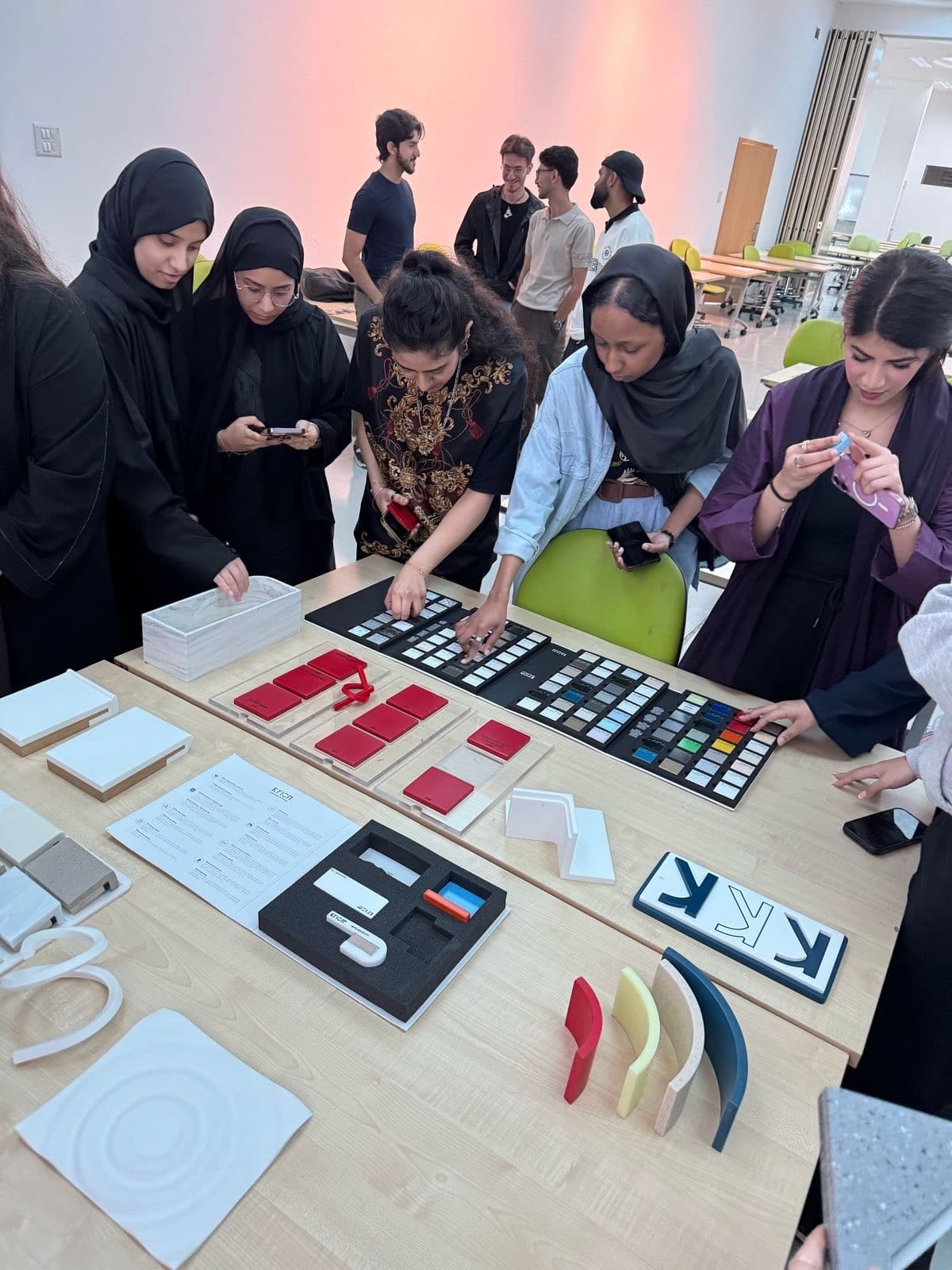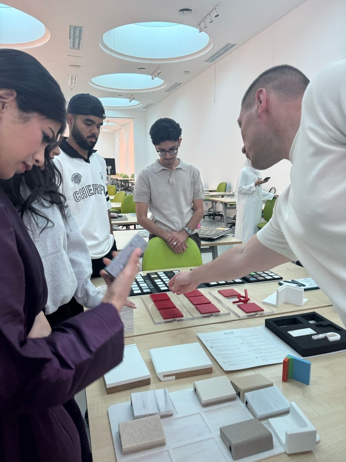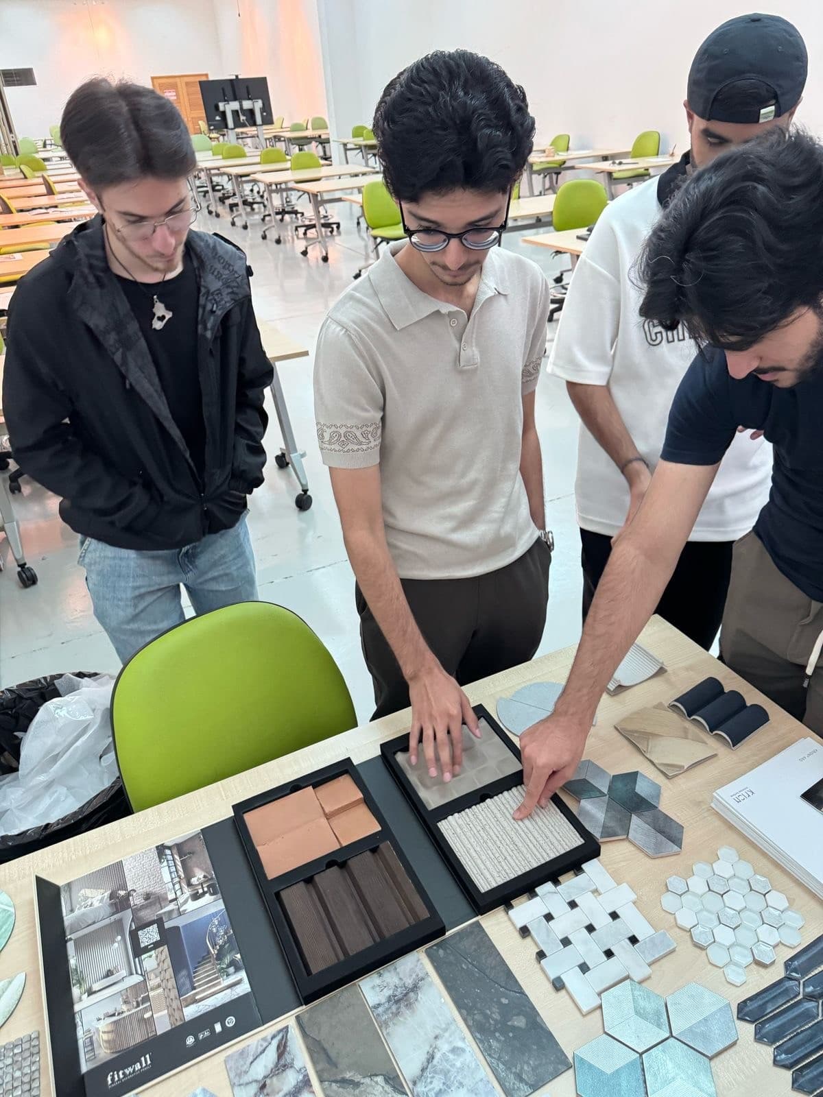 Mood Boards are an essential part of an interior designer’s work when presenting their design concept to a client. Interior Design students benefitted from a hands-on workshop conducted at CFAD by Pocelanosa. The Spanish tile company shared multiple samples with students featuring some of the latest materials available in the local market. The workshop focused on exposing students to a wide range of tiles and other surface materials, as well as explaining the fundamentals of creating mood boards. Workshop organizer Ms. Georgina Abood (Lecturer in Interior Design) noted that “From selecting the right colors, textures, and finishes to understanding how materials shape a space, this workshop assists students in gaining valuable insights into the creative and technical aspects of design development. It also allows students to interact and network with the design market at an early stage of their professional development.”