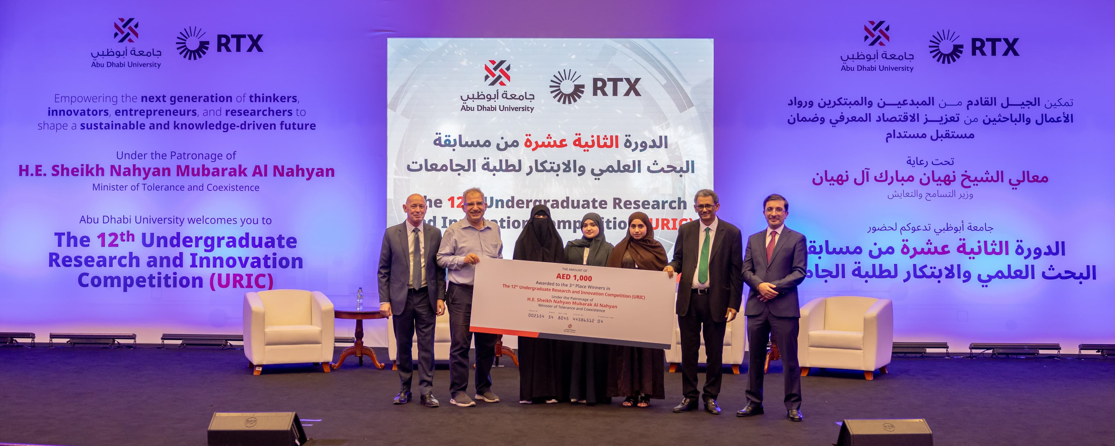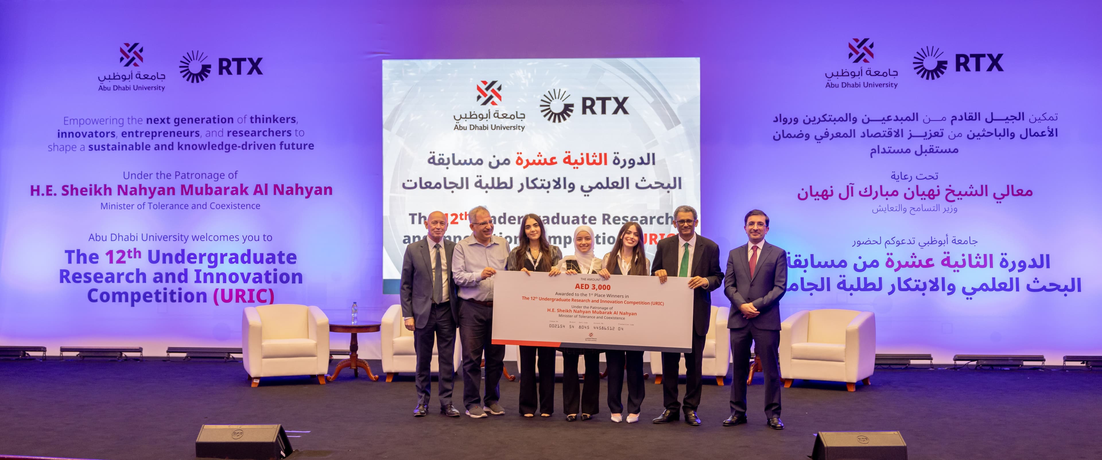 Under the esteemed patronage of His Excellency Sheikh Nahyan Mubarak Al Nahyan, Minister of Tolerance and Coexistence, Abu Dhabi University (ADU) hosted the 12th edition of the Undergraduate Research and Innovation Competition (URIC) on May 29, 2025, at its Abu Dhabi Campus. For the third consecutive year, RTX sponsored the event, reaffirming its dedication to advancing STEM education and innovation locally and globally.