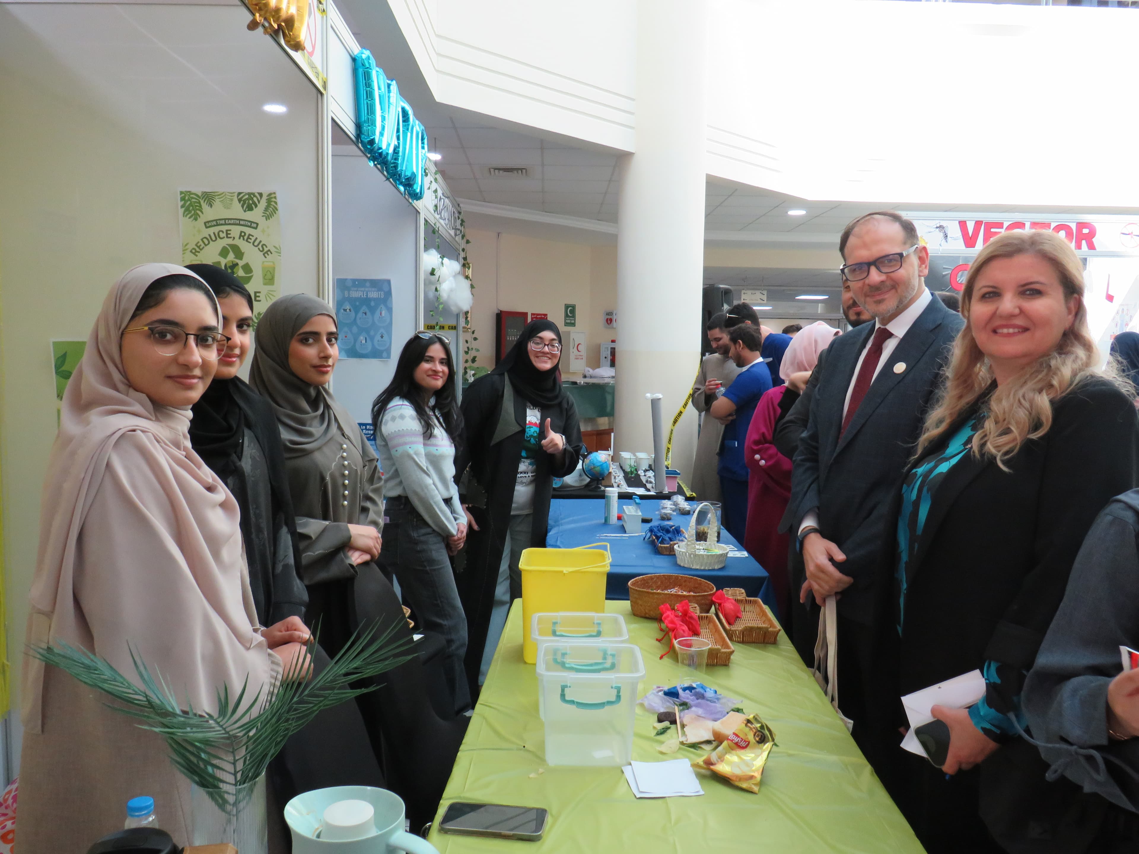 The Environmental Health Sciences Department and Student Society organized a celebration for Earth Health Science Fair 2025. The event aimed to promote environmental health protection and sustainability. Students displayed posters, activities, games, and demonstrated tools to explain how to conserve environmental resources, promote responsible consumption, and protect environmental health.