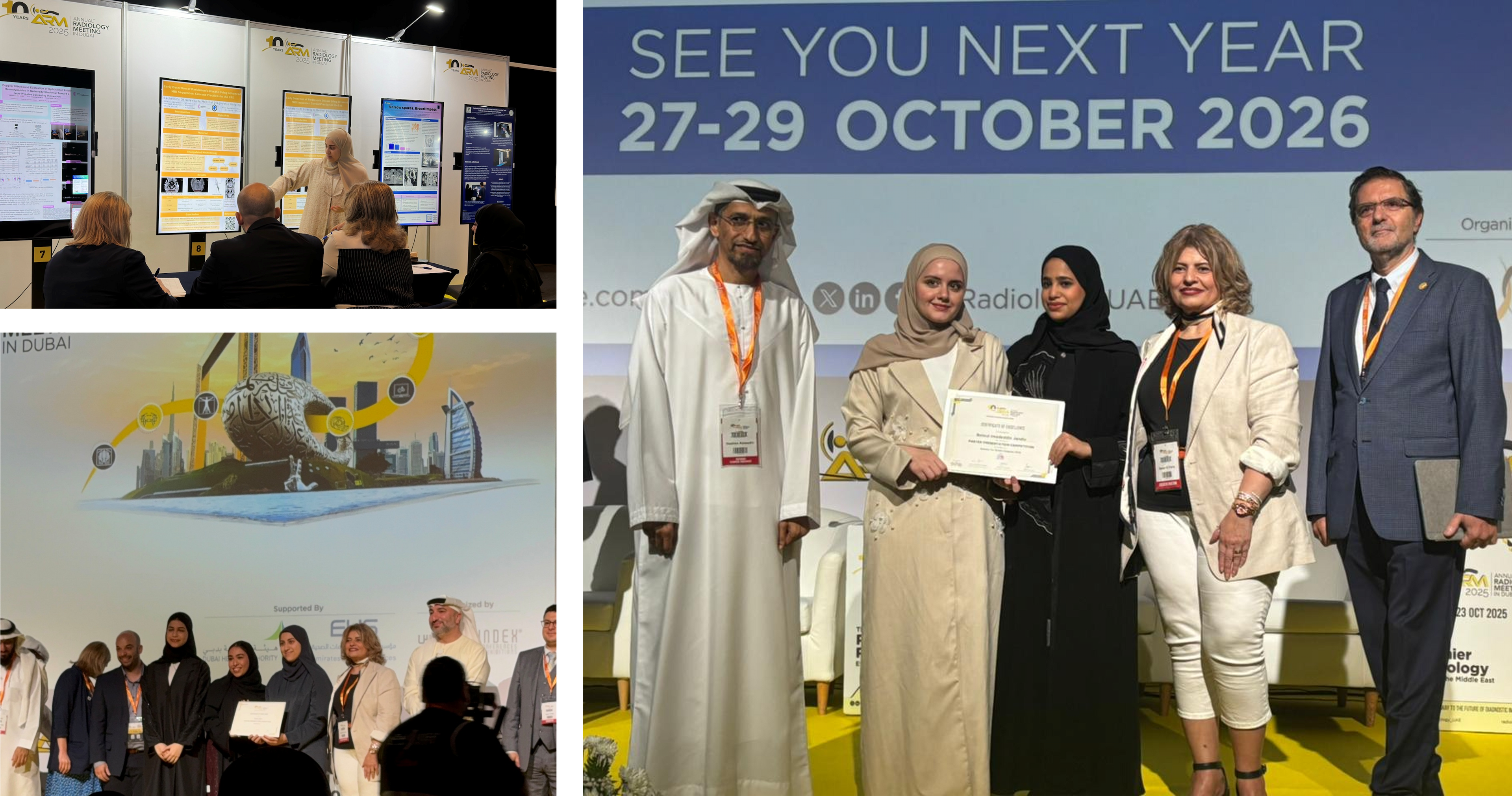 The Department of Medical Diagnostic Imaging participated in the Annual Radiology Meeting (ARM) – 2025, with faculty members contributing to key technical sessions. Dr. Mohamed Abuzaid presented “Advancing Radiography Education in Arab Countries: Developing Radiographers,” while Professor Bashar Afif Issa spoke on “Evolving Role of the Radiographer – Are Radiographers Provided with Adequate Education to Engage AI and Research?” Dr. Leena David also delivered a presentation titled “Bridging the Gap: Simulation as the Key to Clinical Skills.”