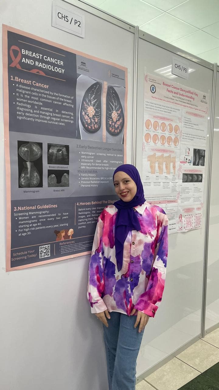 Department of MDI students participated at the Breast Cancer Campaign by College of Health Sciences in collaboration with College of Pharmacy. The event included booth and poster competitions which Doha Hosny Hassan Mohamed, a 4th year MDI student, won the first place in poster competition.