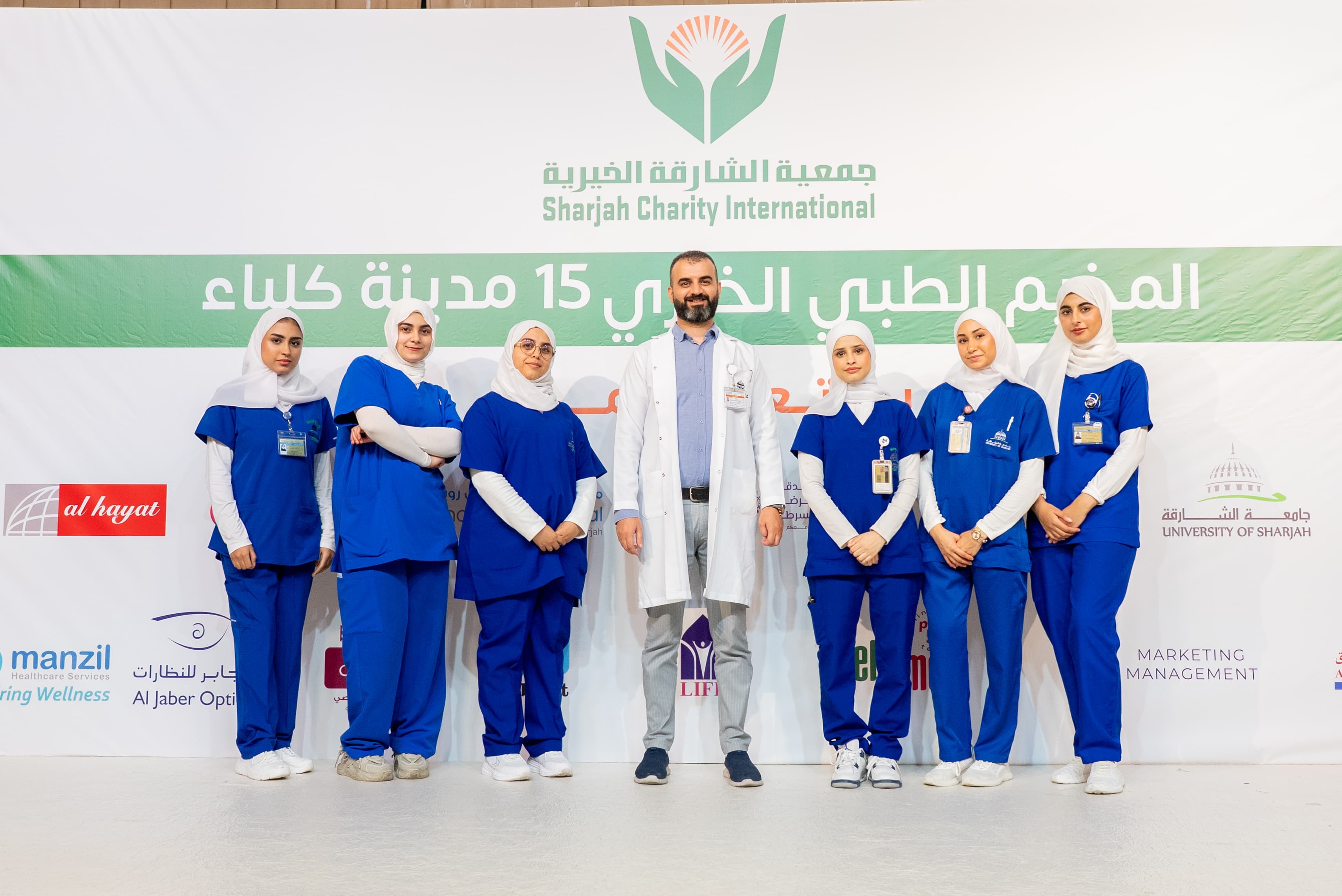 In the presence of Sheikh Haitham bin Saqr Al Qasimi, third-year Nursing students from the University of Sharjah, under the supervision of Mr. Jalal, proudly participated in the 15th Medical Camp in Kalba, organized by the Sharjah Charity Association.