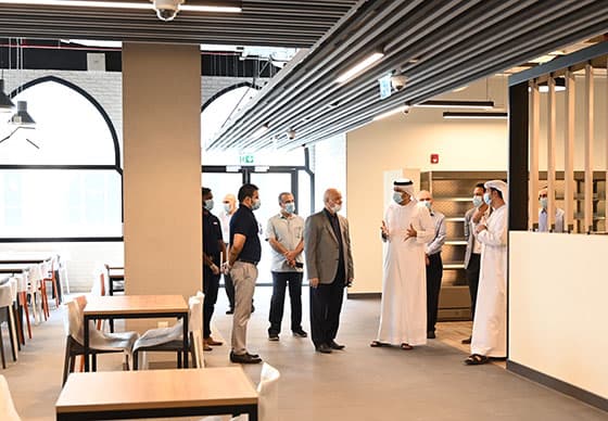 His Excellency the Chancellor also inspected the construction in the Student Forum building, which was announced by His Highness the Ruler of Sharjah and the President of the University for his sons and daughters among university students during one of the Alumni Association's events, and his happiness also inspected the construction work in the restaurant hall in its new look, where the establishment of the Student Forum and development in the restaurant hall is one of the most important elements of the current strategic plan, which aims to make the campus of the University of Sharjah pleasant and comfortable for all, and to enhance and support academic achievement by paying attention to the environment surrounding the student, in addition to enhancing programs, services and facilities for students of determination.