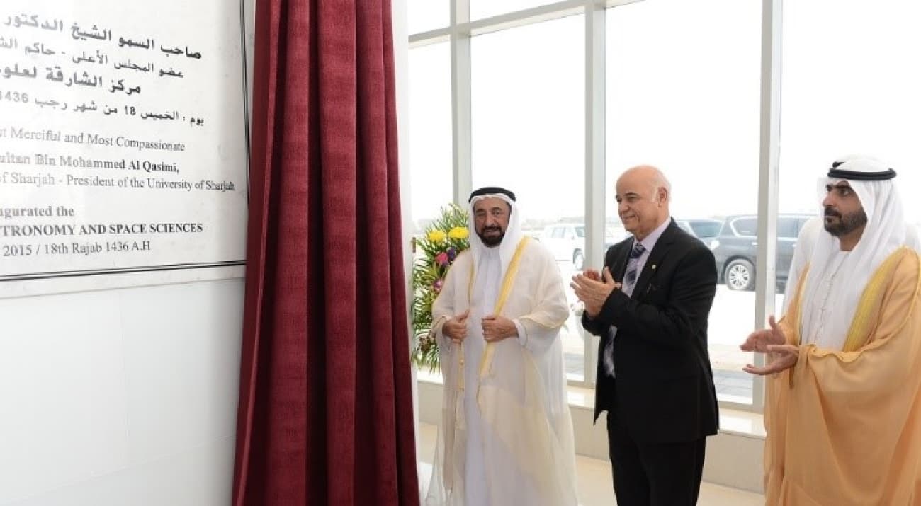 His Highness Sheikh Dr. Sultan Bin Mohammed Al Qasimi officially opened the Sharjah Center for Astronomy and Space Sciences on May 07, 2015, with Prof. Hamid Al-Naimiy, the Chancellor of the University of Sharjah, and several VIPs.