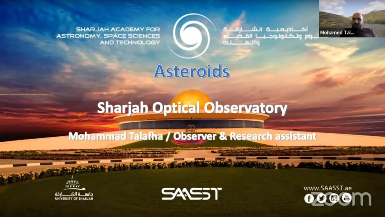 The Sharjah Academy for Astronomy, Space Sciences, and Technology organized an online general lecture ‘Asteroids” on Jan. 26, 2022. The lecture was given by the research assistant Mr. Mohamed Talafha. Mr. Talafha is also the main astronomical observer at the SAASST Sharjah Optical Observatory. Asteroids are mainly those rocks in between the orbits of Mars and Jupiter. They are considered to be the leftover of the formation of the solar system.