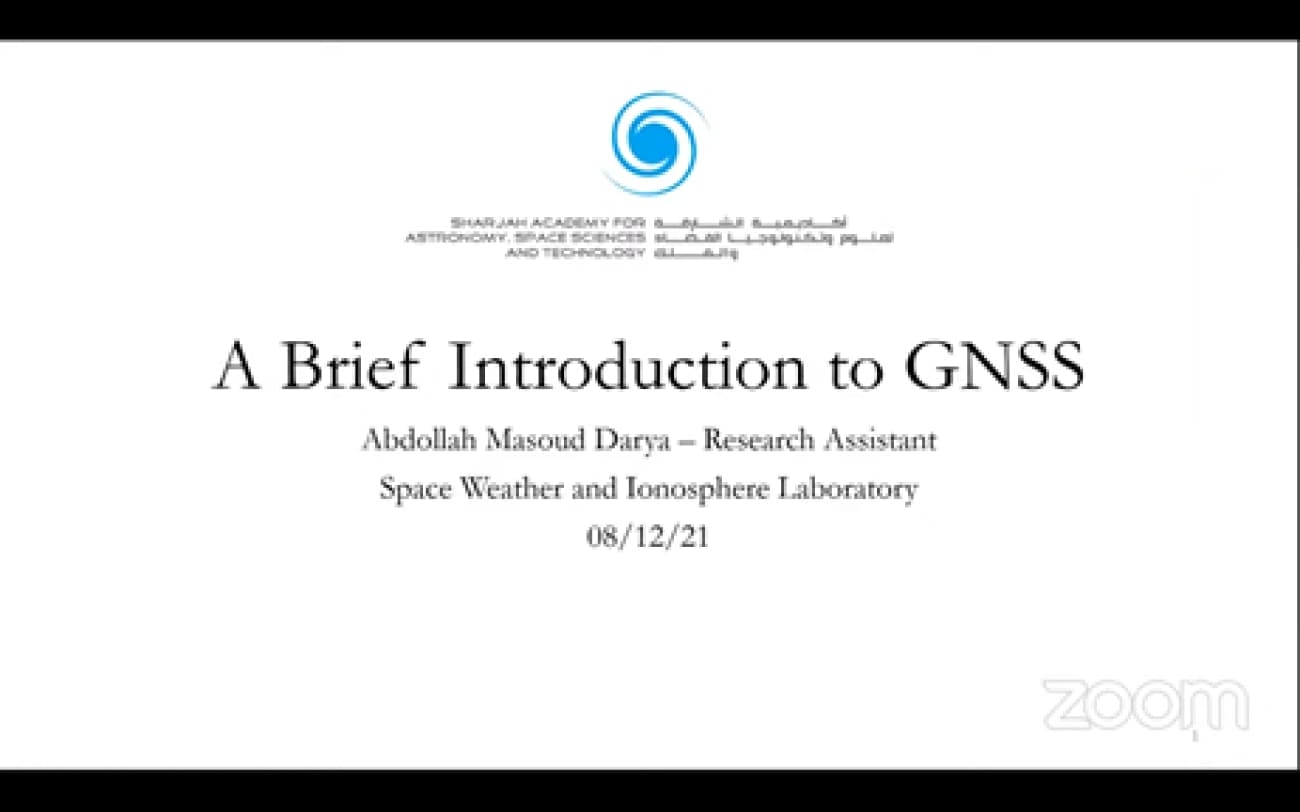 The Sharjah Academy for Astronomy, Space Sciences, and Technology organized an online lecture on Wednesday, Dec. 08, 2021, titled "A Brief Introduction to GNSS." The lecturer was Mr. Abdullah Masud from the SAASST Space Weather and Ionospheric Laboratory. More than 80 participants followed the lecture on Zoom and YouTube.