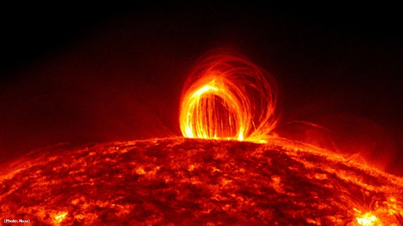 Solar flares are large eruptions of electromagnetic radiation from the Sun lasting from minutes to hours. The sudden outburst of electromagnetic energy travels at the speed of light. Therefore, any effect upon the sunlit side of Earth’s exposed outer atmosphere will occur a couple of minutes later.