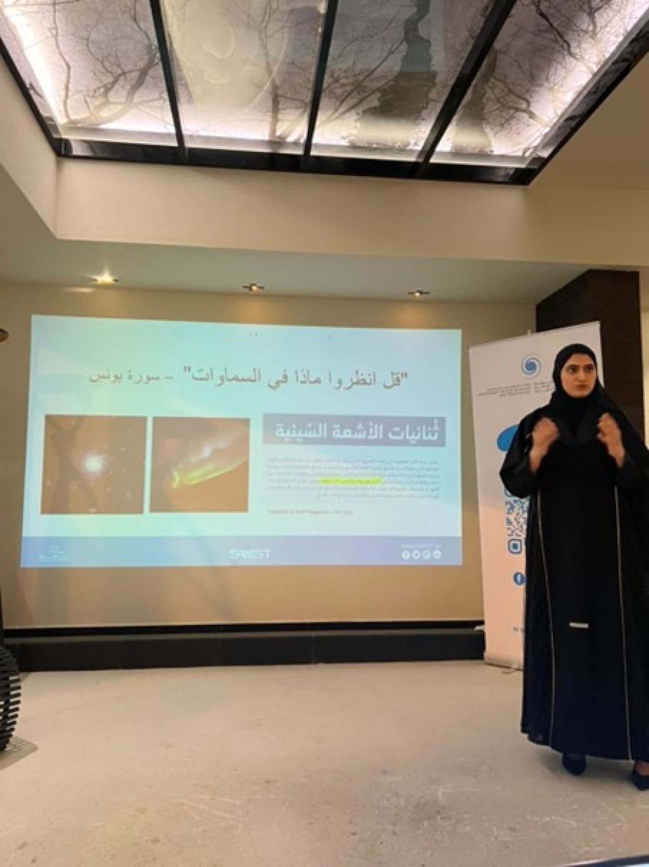 The address targeted youth from the Emirate of Sharjah - Khor Fakkan to enrich their scientific background in space sciences and astronomy. Ms. Noora Al-Ameri, a Research Assistant at the High Energy Astrophysics, gave the lecture.