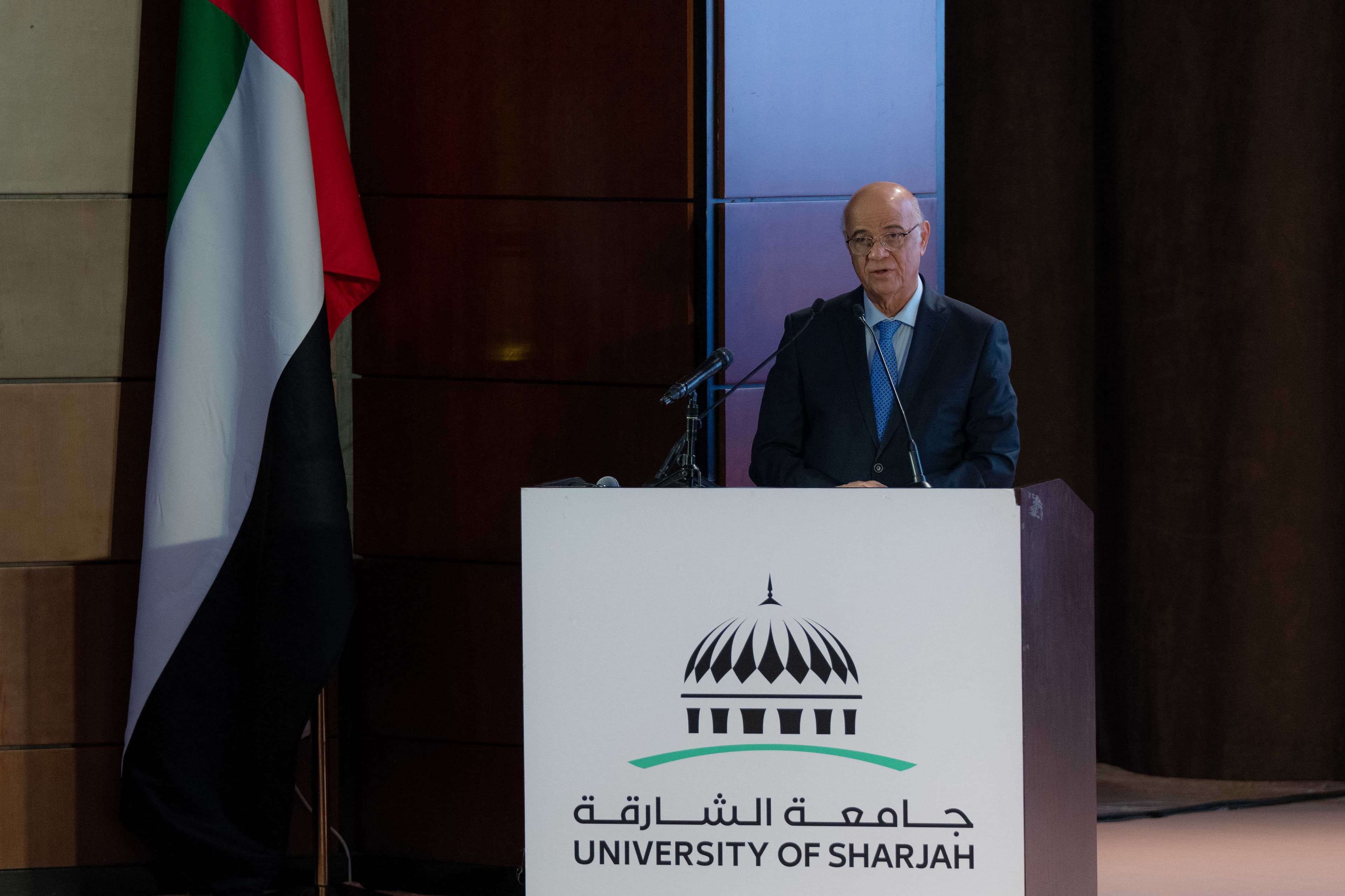 Mr. Salem Humaid Al Marri, Director General of the Mohammed bin Rashid Space Centre, delivered a keynote address in which he commended the efforts of the Sharjah Academy for Astronomy, Space Sciences and Technology and the close cooperation between the University of Sharjah and the center in preparing national cadres. He noted that 20% of the center’s workforce are graduates of the University of Sharjah.