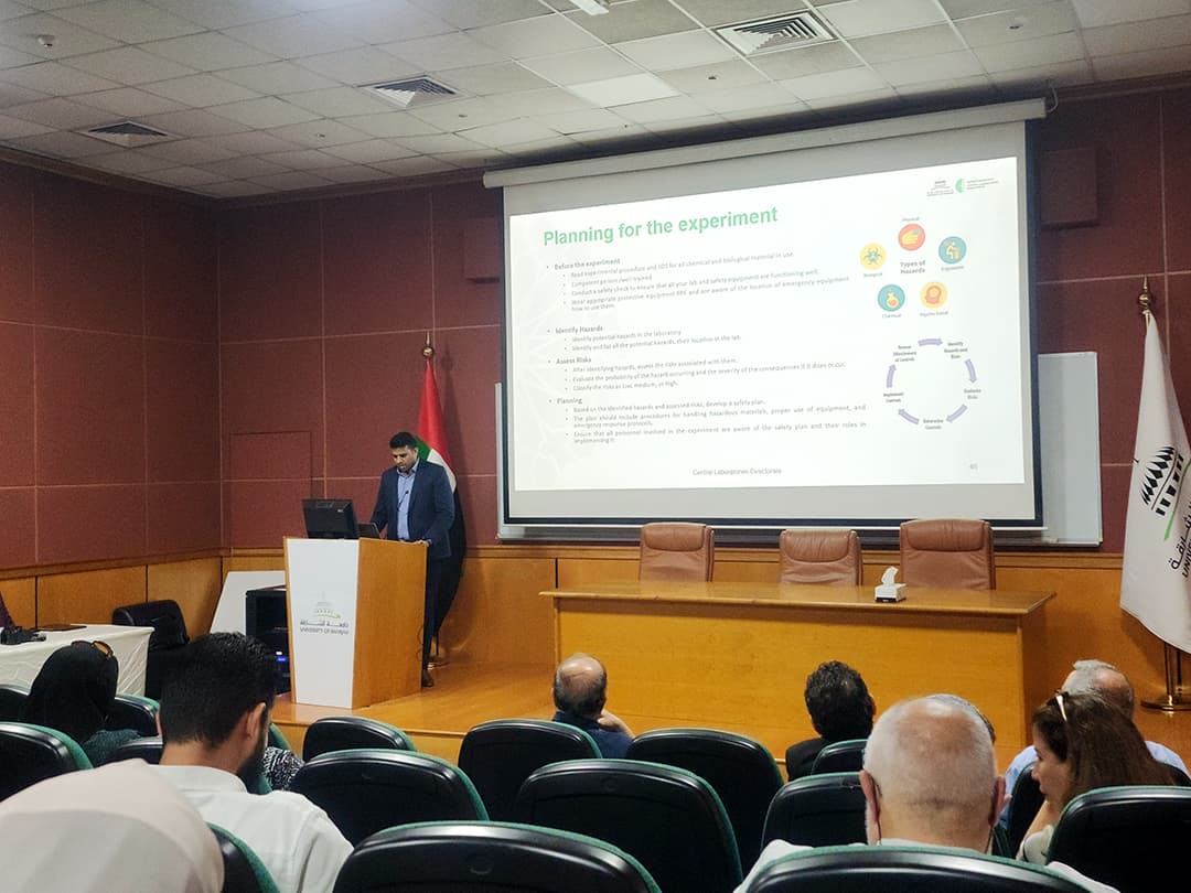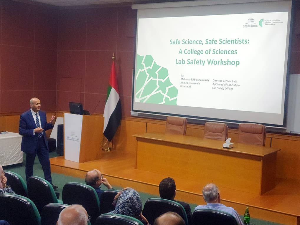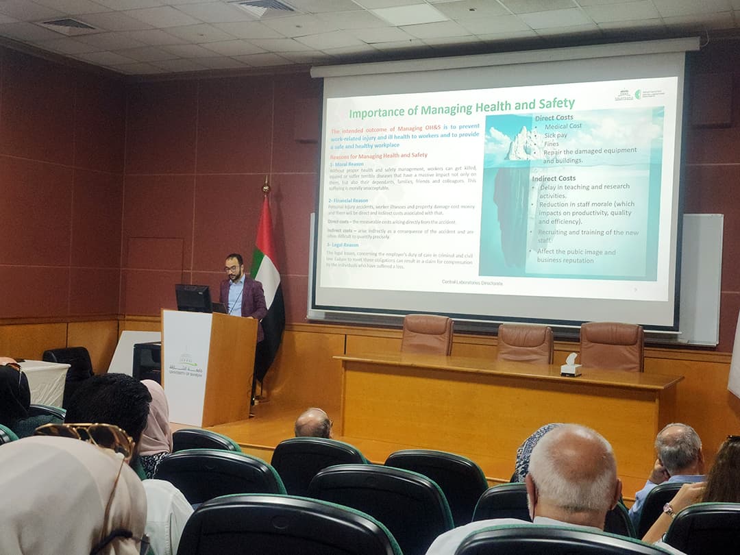 The Central Labs Directorate, in conjunction with the College of Sciences, organized a workshop focused on Lab Safety within the College's laboratories. The primary objective of this workshop was to support laboratory safety measures at the College of Sciences Labs and provide comprehensive guidance to lab personnel on adopting the best safety practices. The ultimate goal was to establish robust safeguards against potential lab hazards and effectively mitigate associated risks.
