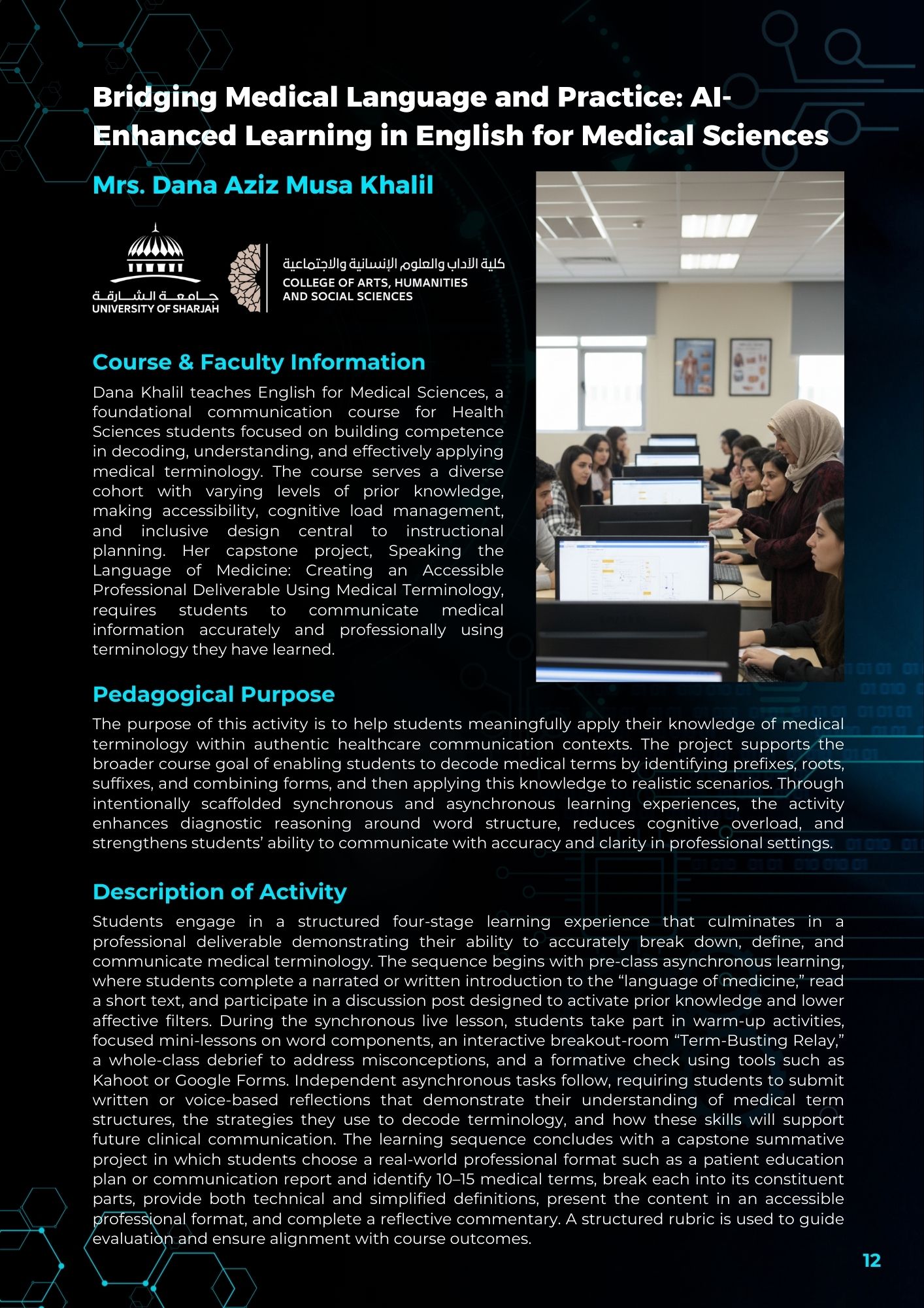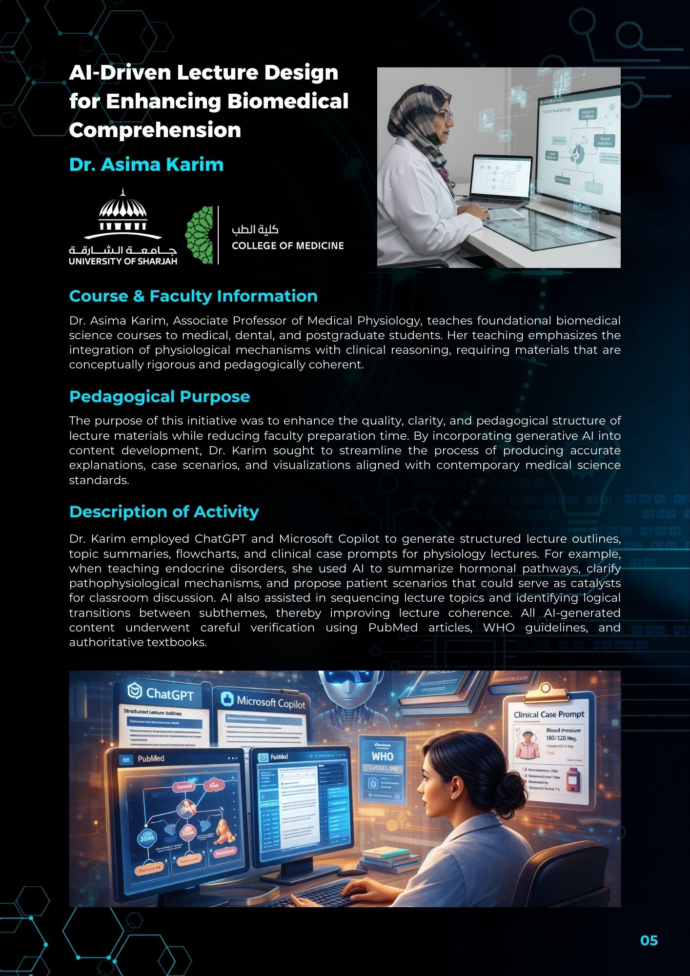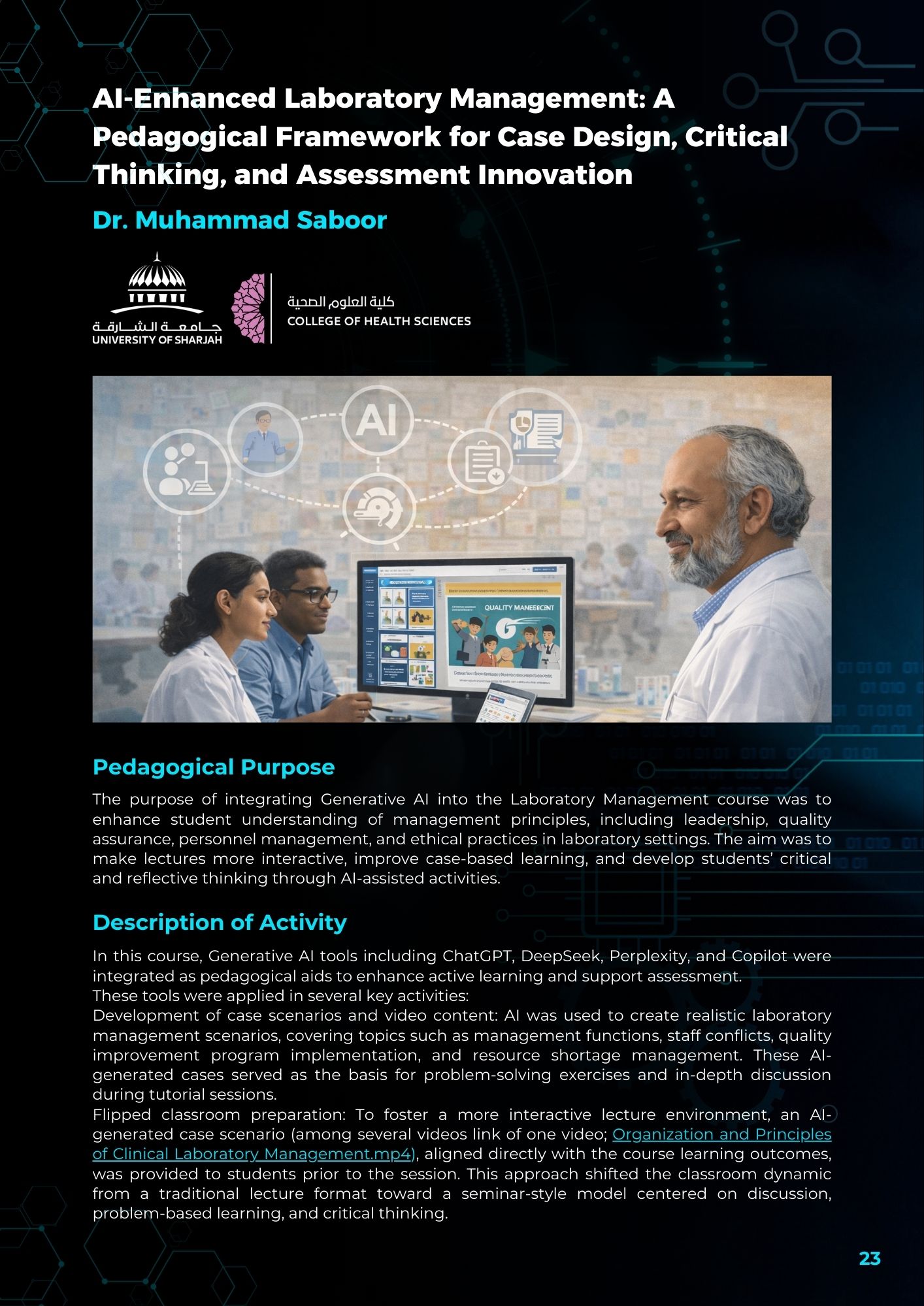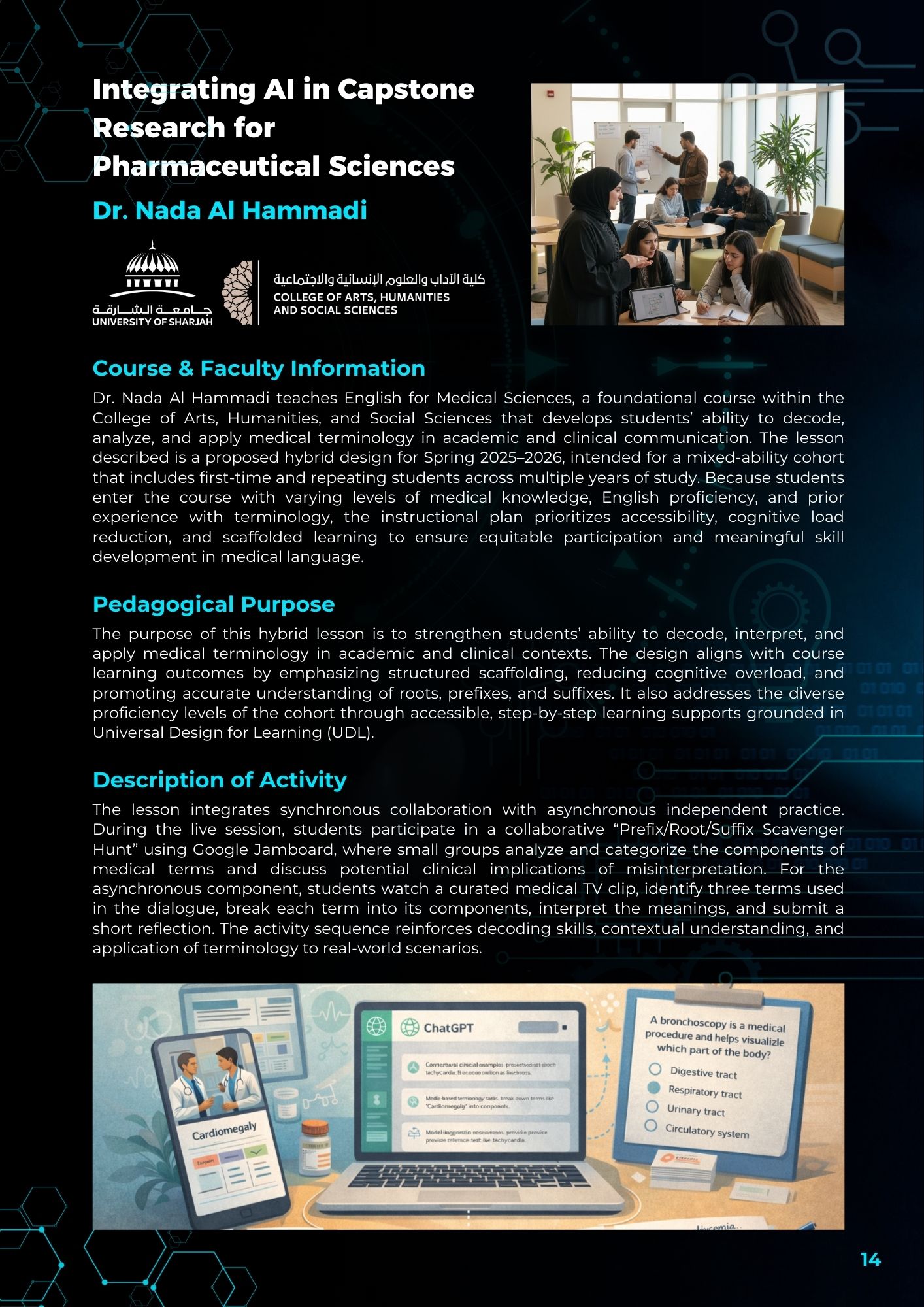 As part of the program’s certification requirements, participating faculty members developed practical applications demonstrating the use of generative AI within their disciplinary and instructional contexts.