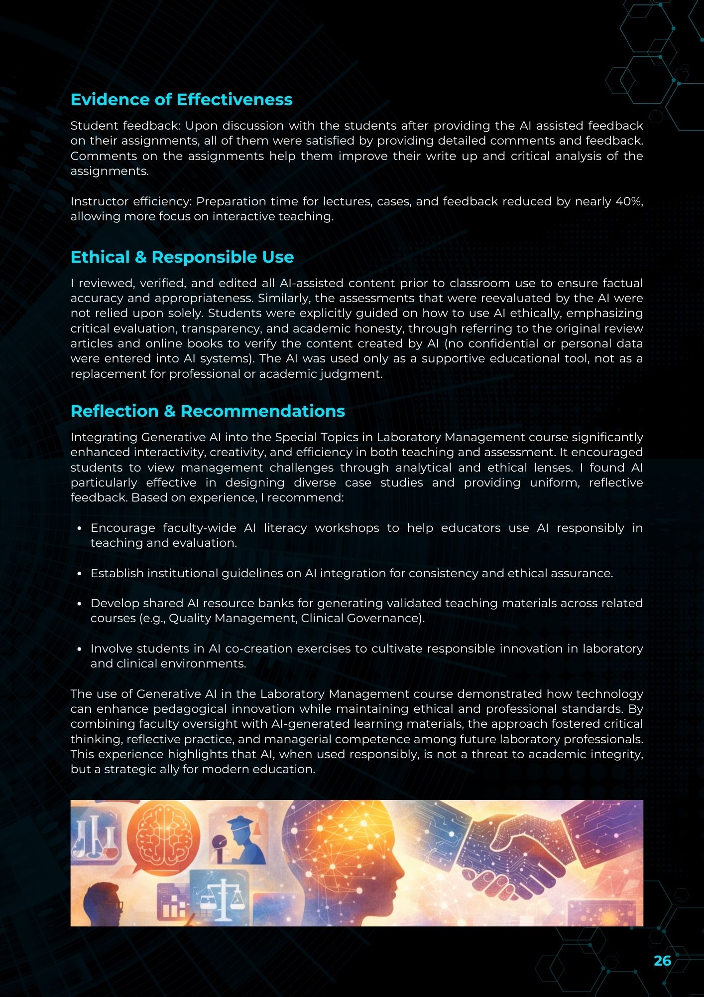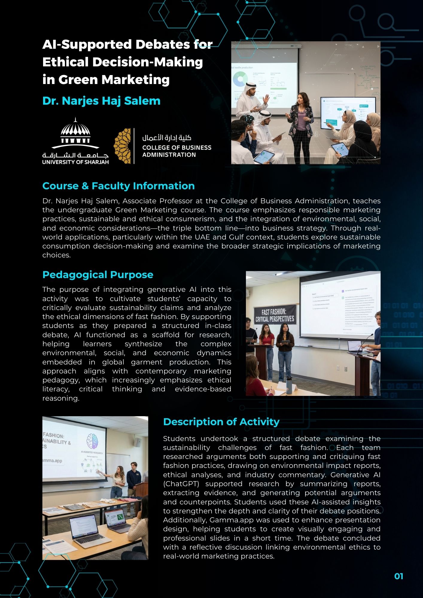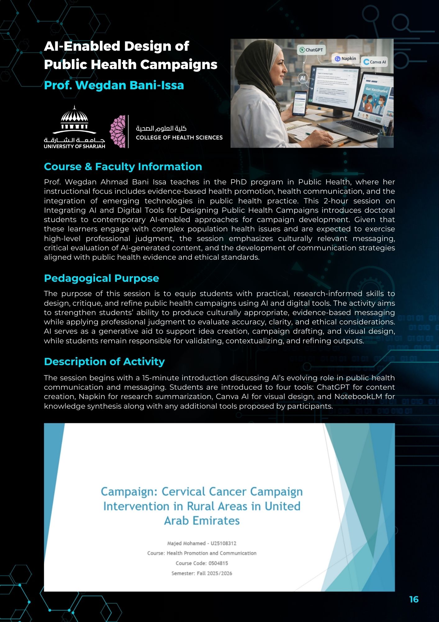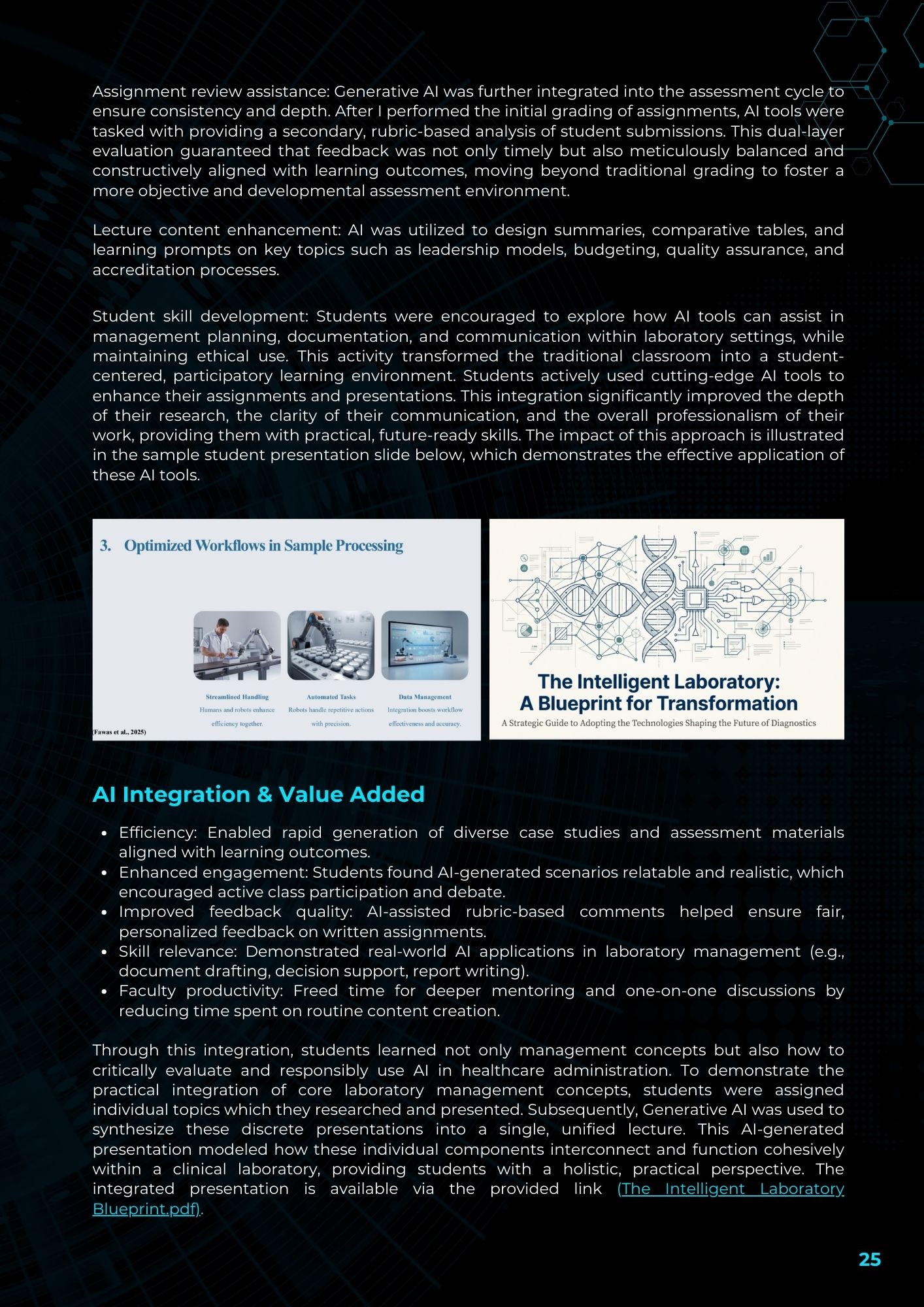 As part of the program’s certification requirements, participating faculty members developed practical applications demonstrating the use of generative AI within their disciplinary and instructional contexts.