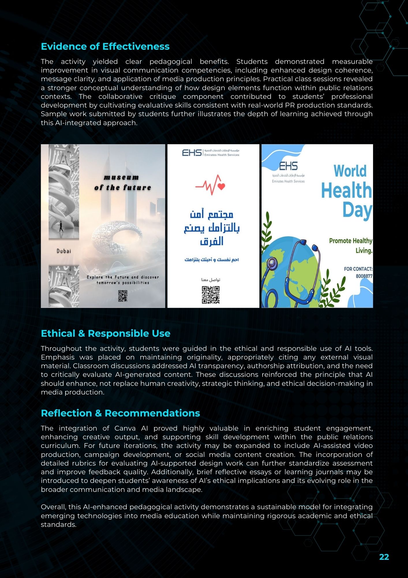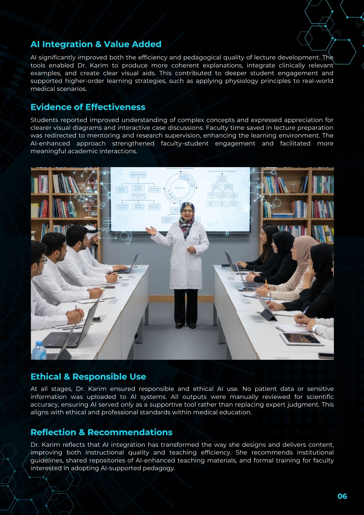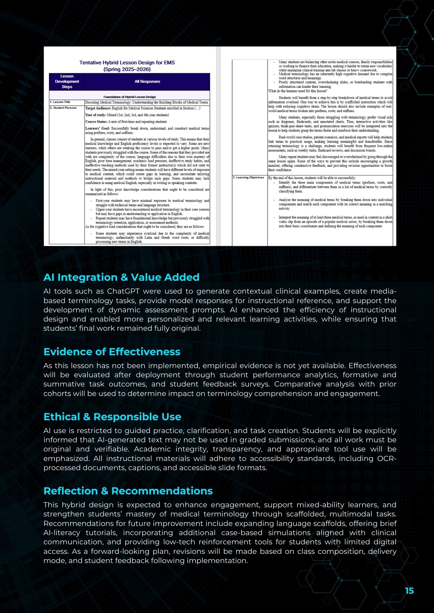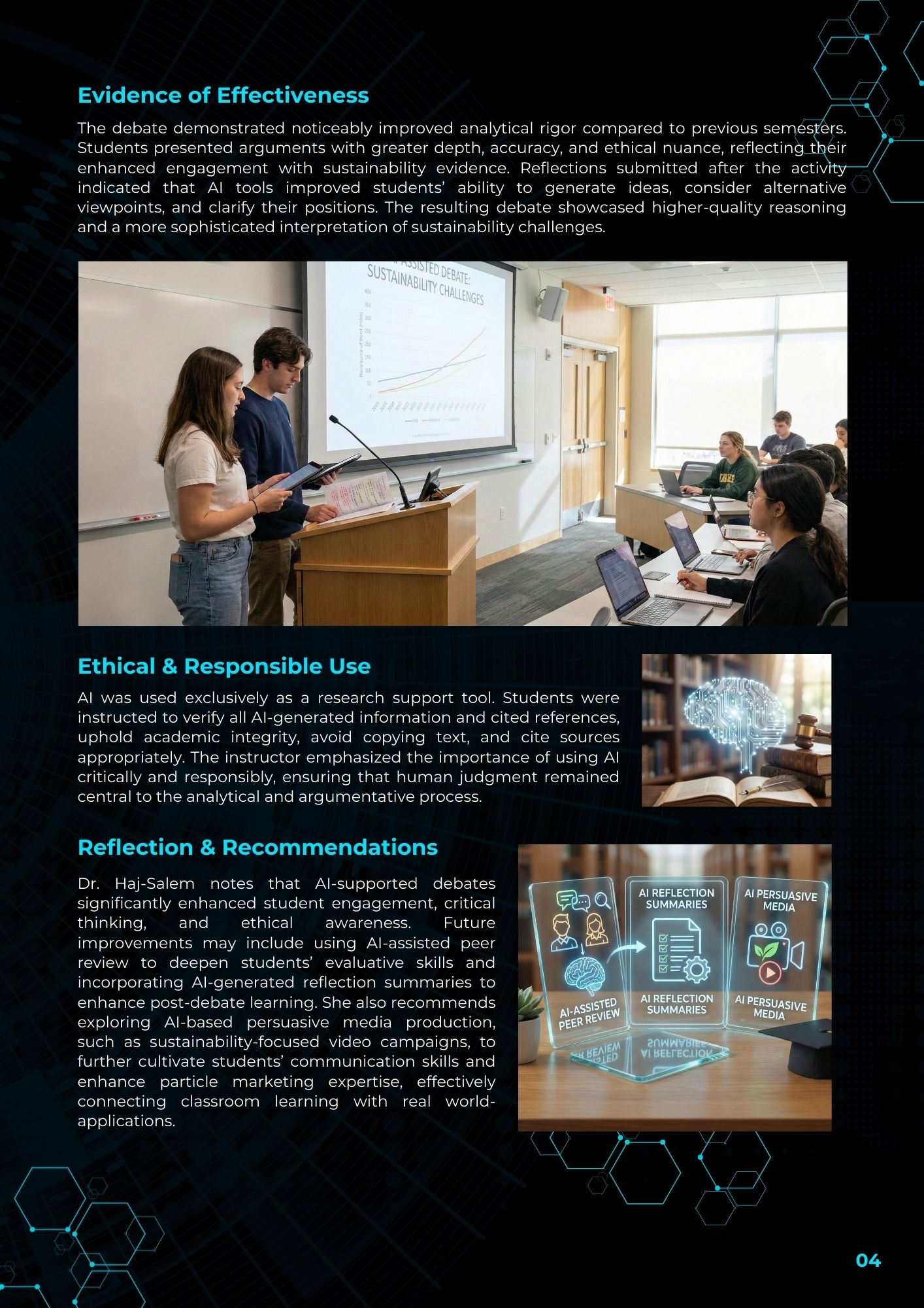 As part of the program’s certification requirements, participating faculty members developed practical applications demonstrating the use of generative AI within their disciplinary and instructional contexts.