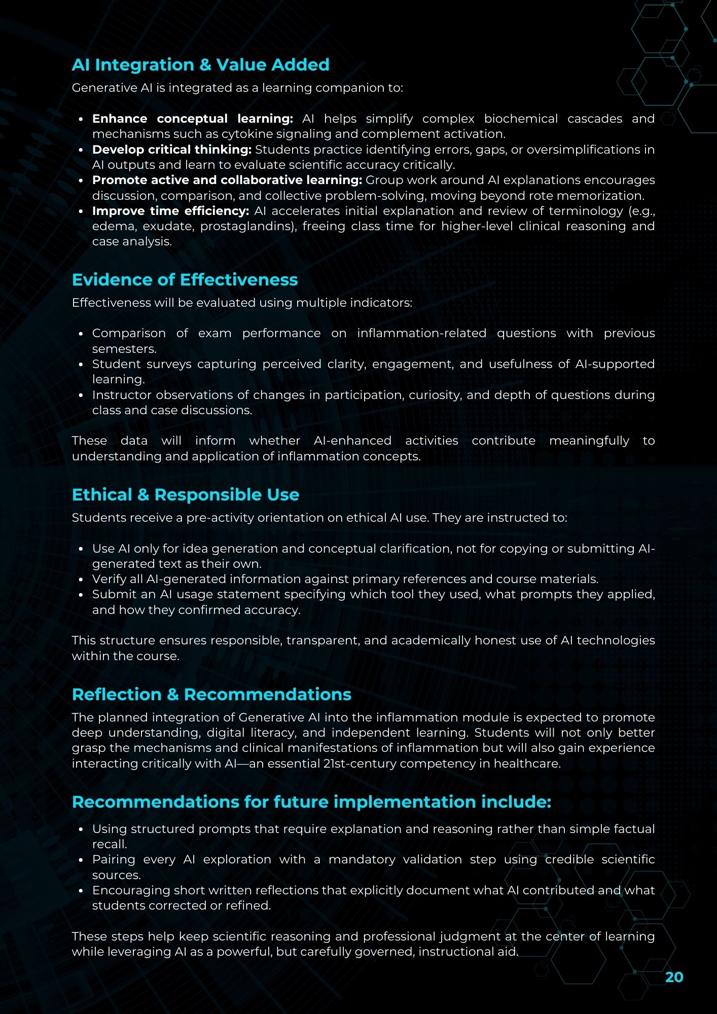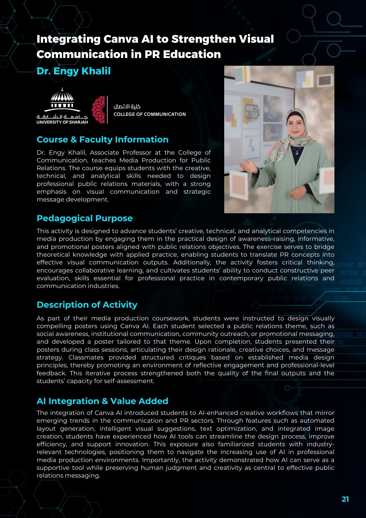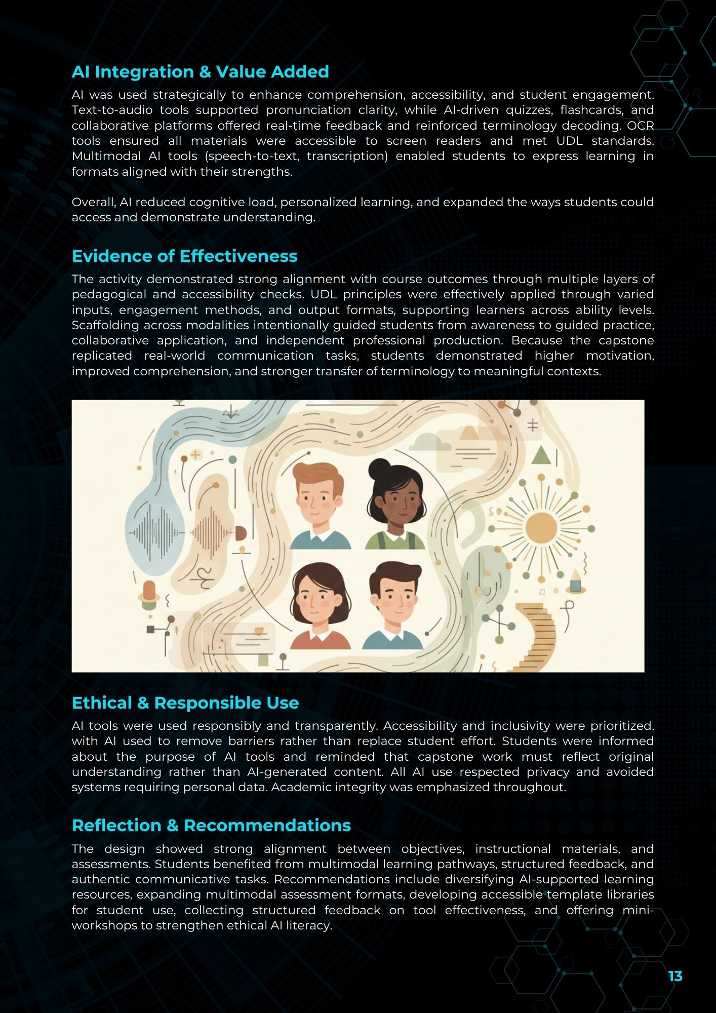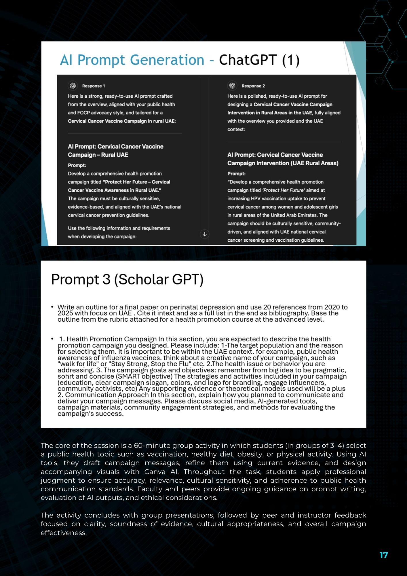 As part of the program’s certification requirements, participating faculty members developed practical applications demonstrating the use of generative AI within their disciplinary and instructional contexts.