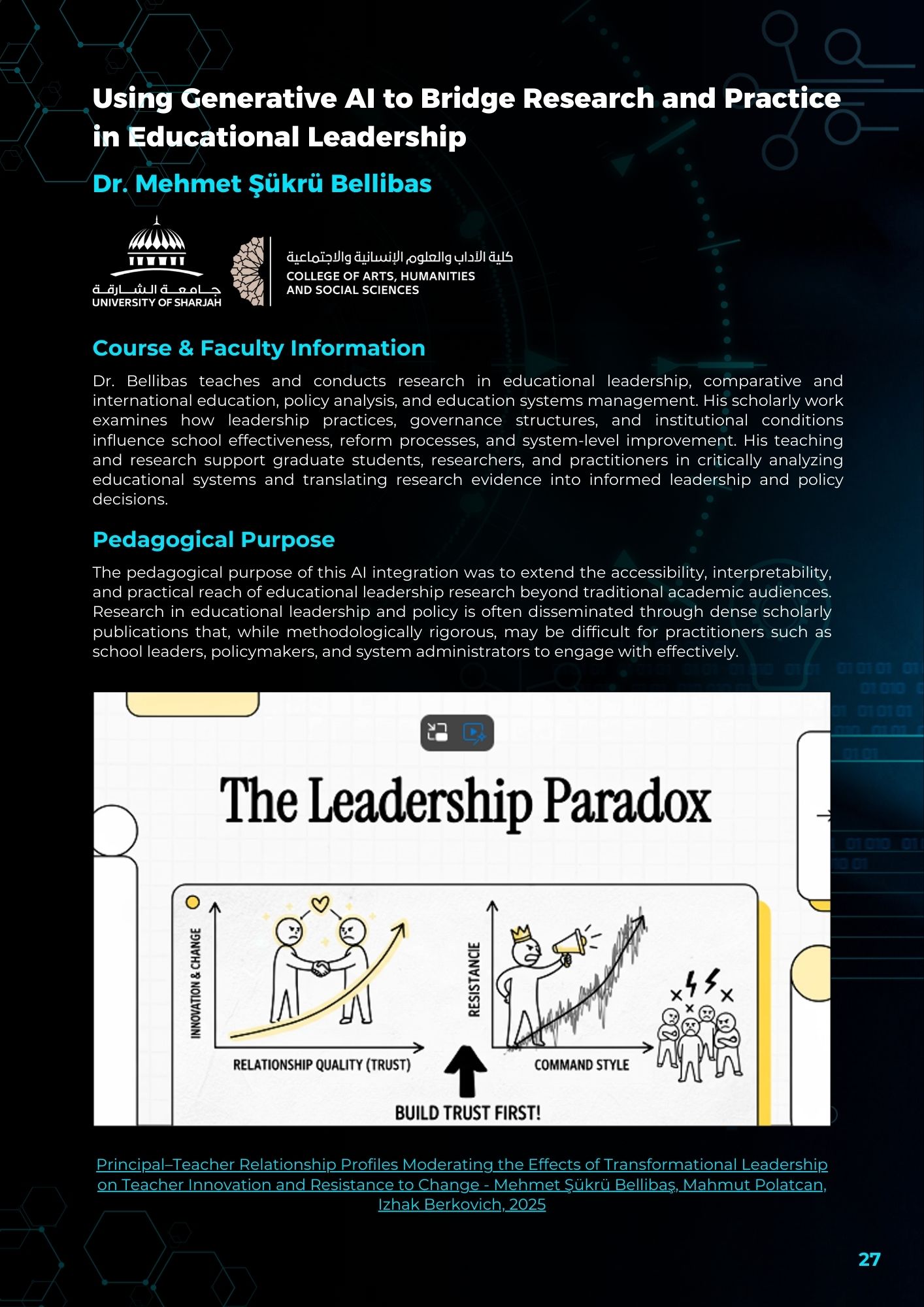 This handbook is an outcome of the AI in Higher Education: Faculty Intensive Training Program, delivered by the Institute of Leadership in Higher Education (ILHE) at the University of Sharjah.