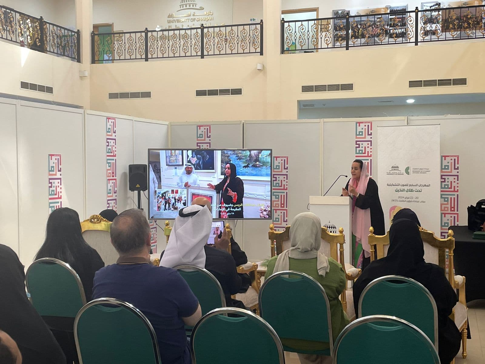 A museum dedicated to modern Emirati art participated with an informational booth to support talented Emirati female students in the field of painting. The museum aims to provide support by organizing art exhibitions for them and introducing them to the community.