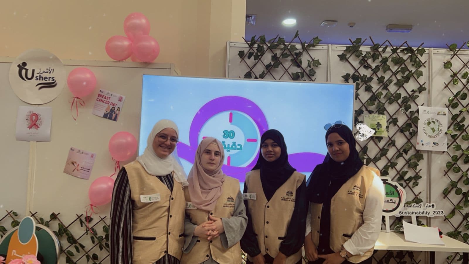 Under the supervision of the Deanship of Student Affairs, the Student Activities Department organized the health awareness exhibition titled "Stay Healthy 5" and breast cancer awareness. Various entities, including government and non-government hospitals and clinics from both within and outside the university, were hosted. The exhibition provided consultations and screenings to the public and included numerous activities, workshops, and awareness competitions. Additionally, discounts and free coupons were offered to students. Students from various clubs, including the Ashers team and volunteers, participated in promoting health awareness and breast cancer education.
