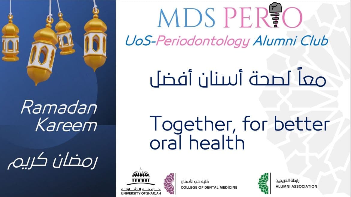 في 3 أبريل 2024، الساعة 9 صباحًا، أطلقنا مبادرة "رمضان" في مرافق جامعة الشارقة. كانت هذه البرنامج الخاص يهدف إلى تعزيز الوعي بصحة اللثة خلال شهر رمضان المبارك. شارك الحضور في ورش عمل معلوماتية، وفحوصات صحية، وجلسات تفاعلية تركزت على الحفاظ على صحة الفم أثناء الصيام. شجعت المبادرة على تفاعل المجتمع وقدمت موارد قيمة لدعم العادات الصحية خلال رمضان. شكرًا لكل من شارك وساهم في نجاح هذا الحدث الهام!