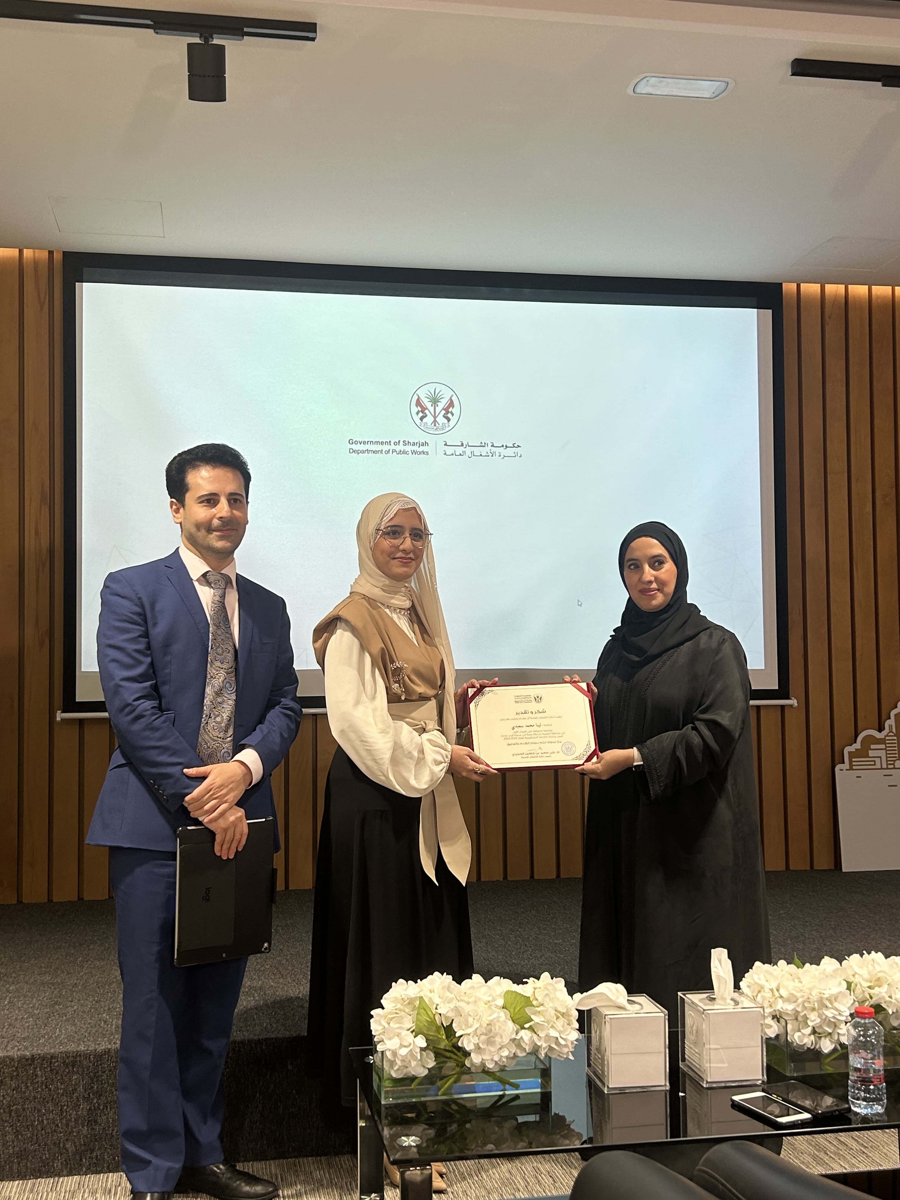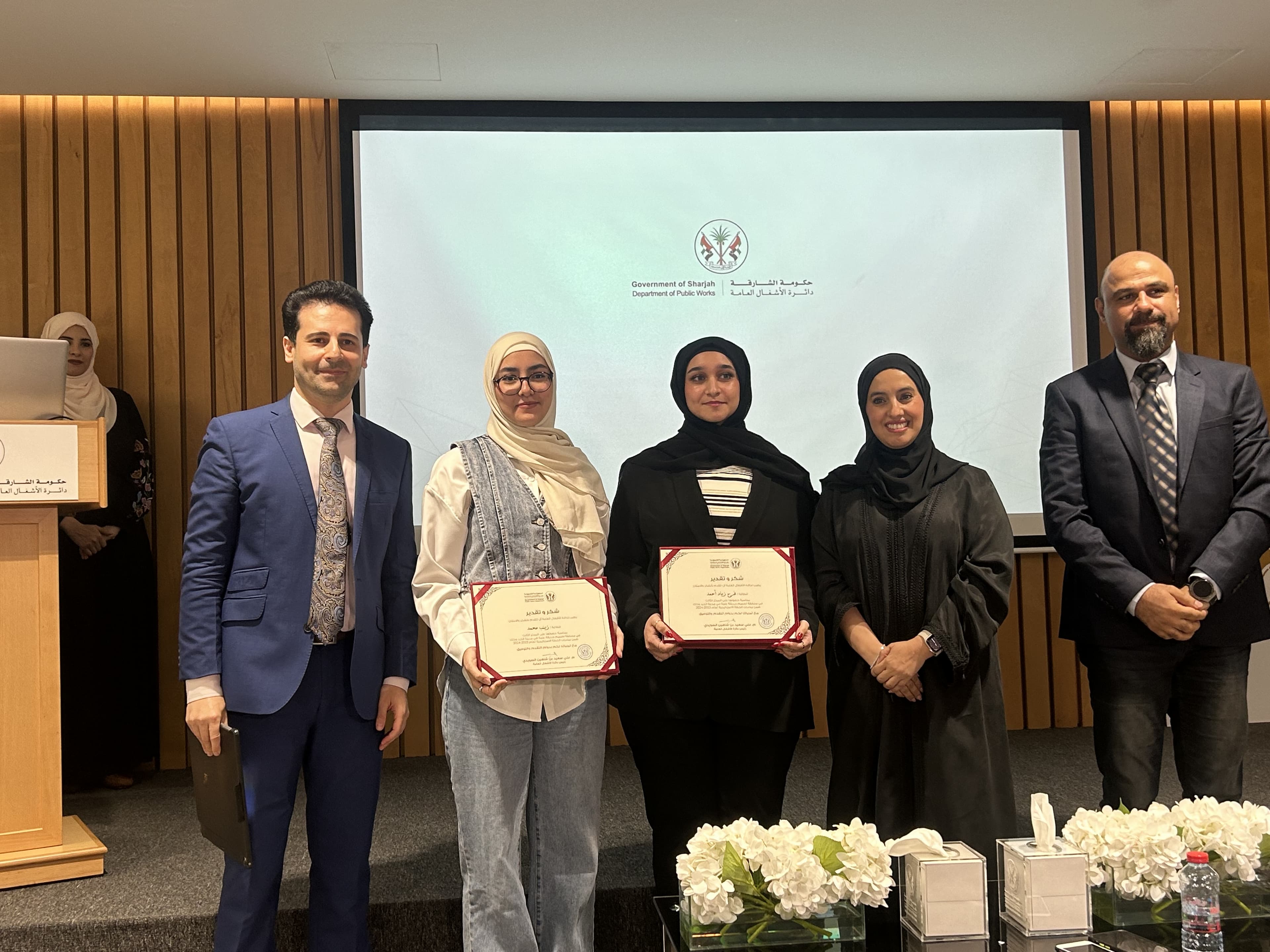 فاز طلاب الهندسة المعمارية والمشرفون عليهم بجوائز في مسابقة تصميم حدائق الذيد العامة، التي نظمتها دائرة درهم الإمارات ودائرة الأشغال العامة بحكومة الشارقة، بتنسيق الدكتور أحمد سكر.