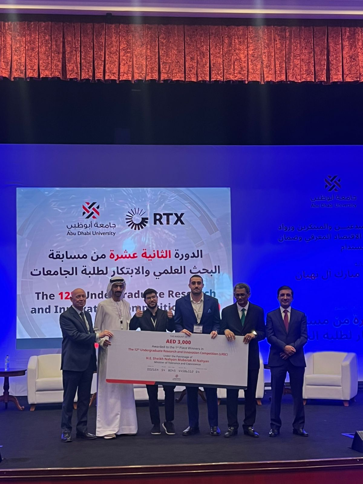 المركز الأول – قطاع الطاقة المستدامة والمتجددة في الدورة الثانية عشرة من مسابقة البحوث والابتكار الجامعية – جامعة أبوظبي