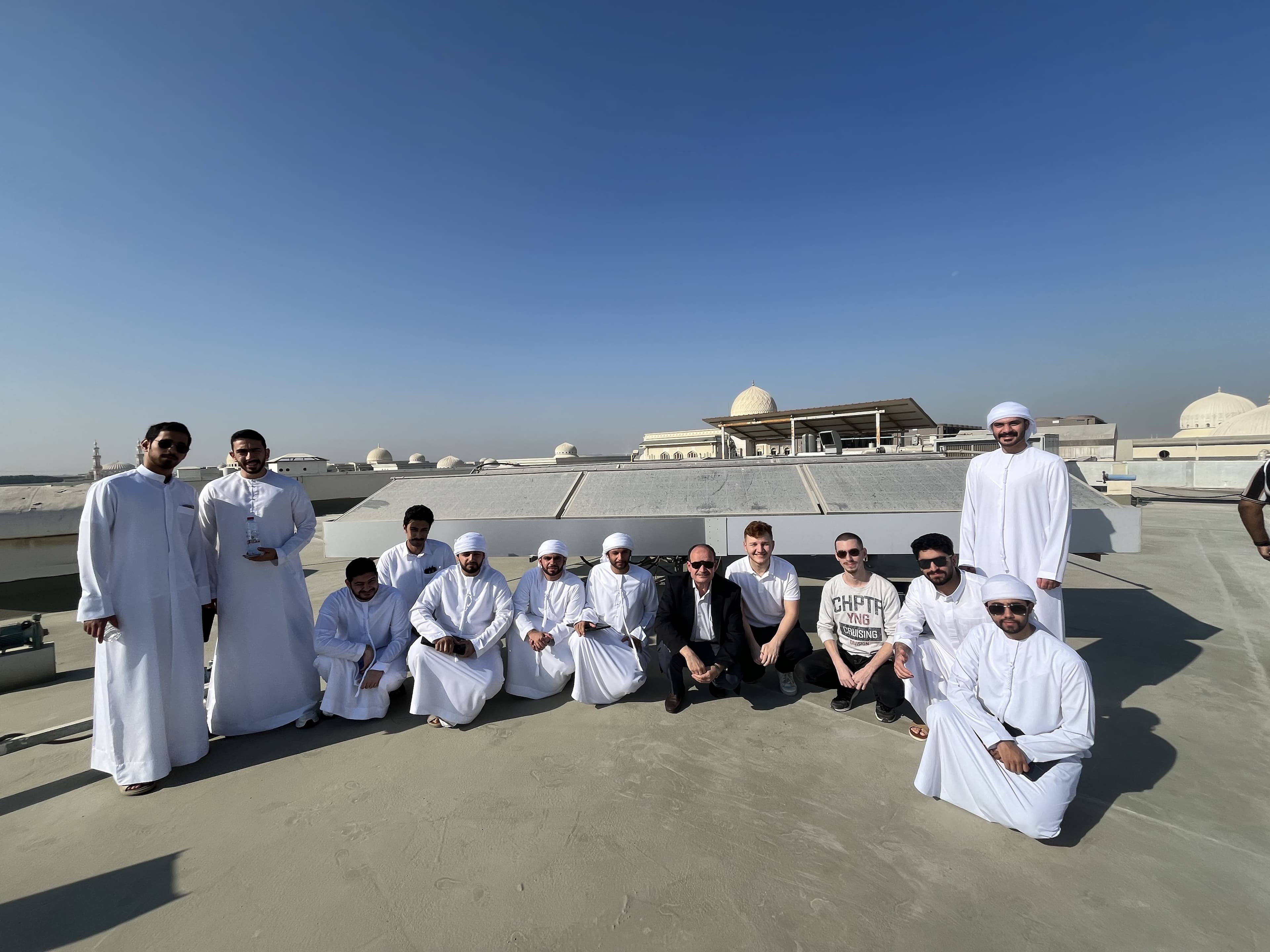في إطار مبادرة للتعلّم التجريبي، شارك الطلبة في زيارة ميدانية إلى محطة الطاقة الشمسية الكهروضوئية–الحرارية (PV/T) بقدرة 3 كيلوواط والمتصلة بالشبكة الكهربائية. وقد أتاحت الزيارة تجربة عملية مباشرة على تقنية شمسية هجينة تقوم بتوليد كلٍّ من الطاقة الكهربائية والطاقة الحرارية في الوقت نفسه، مما يبرز حلول الطاقة المتجددة المتقدمة المصممة للأداء في المناخات الحارة.