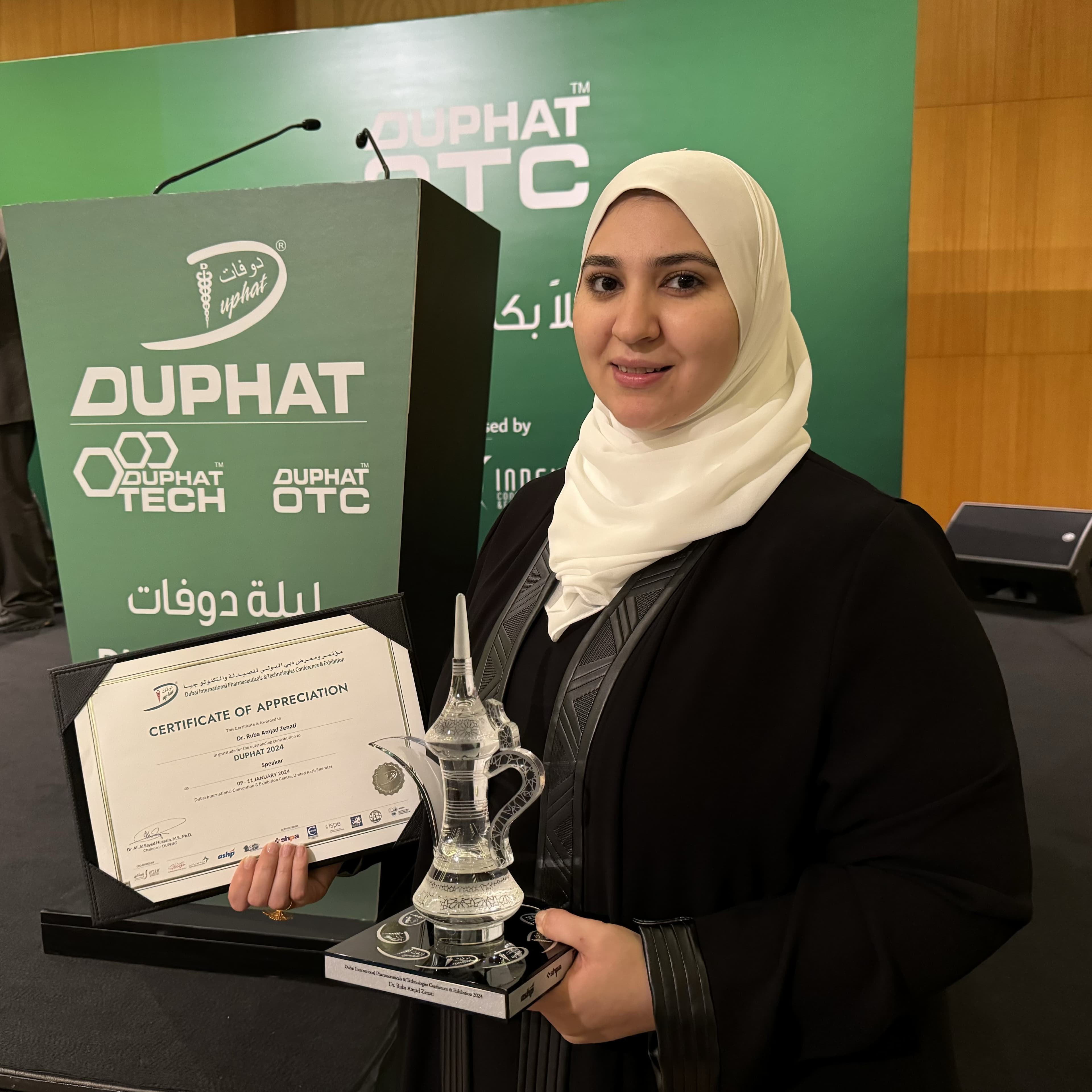 متحدث في مؤتمر ومعرض دبي الدولي للأدوية والتقنيات 2024 للبحث المعنون "التحليل المتعدد الأوميكس غير المستهدف لخط خلايا LNCaP المعالج بمادة جديدة مرتبطة بالحمض النووي و/أو دوكسوروبيسين باستخدام مطياف الكتلة."
