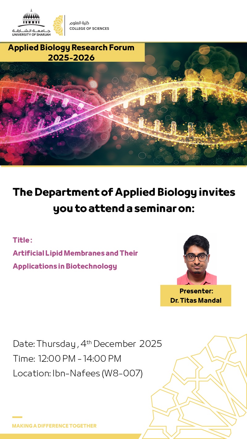«الأغشية الدهنية الاصطناعية وتطبيقاتها في التكنولوجيا الحيوية» تقديم الدكتور تيتاس ماندال