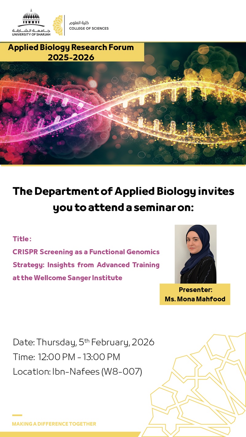 «الفحص باستخدام تقنية كريسبر كإستراتيجية في علم الجينوم الوظيفي: رؤى مستمدة من تدريب متقدم في معهد ويلكوم سانغر» تقديم الأستاذة منى محفوظ