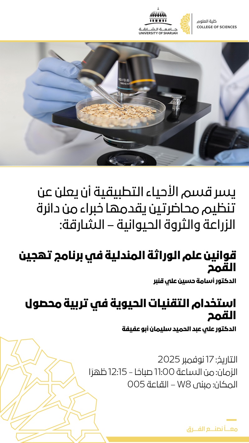 تنظيم محاضرتين يقدمهما خبراء من دائرة الزراعة والثروة الحيوانية التصحيحات والمبررات