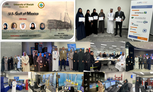 IBA-AAPG 2024 هي مسابقة دولية حيث تم الاعتراف بفريق جامعة الشارقة كواحد من أفضل أربعة فرق جامعية في منطقة الشرق الأوسط في علوم الأرض البترولية، وعلى وجه الخصوص الفريق الوحيد الذي يمثل دولة الإمارات العربية المتحدة. أقيم هذا الحدث المرموق في جامعة الملك فهد للبترول والمعادن في الظهران، المملكة العربية السعودية.