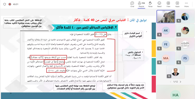 تنفيذ قسم التربية لورشة التوثيق العلمي باستخدام دليل APA