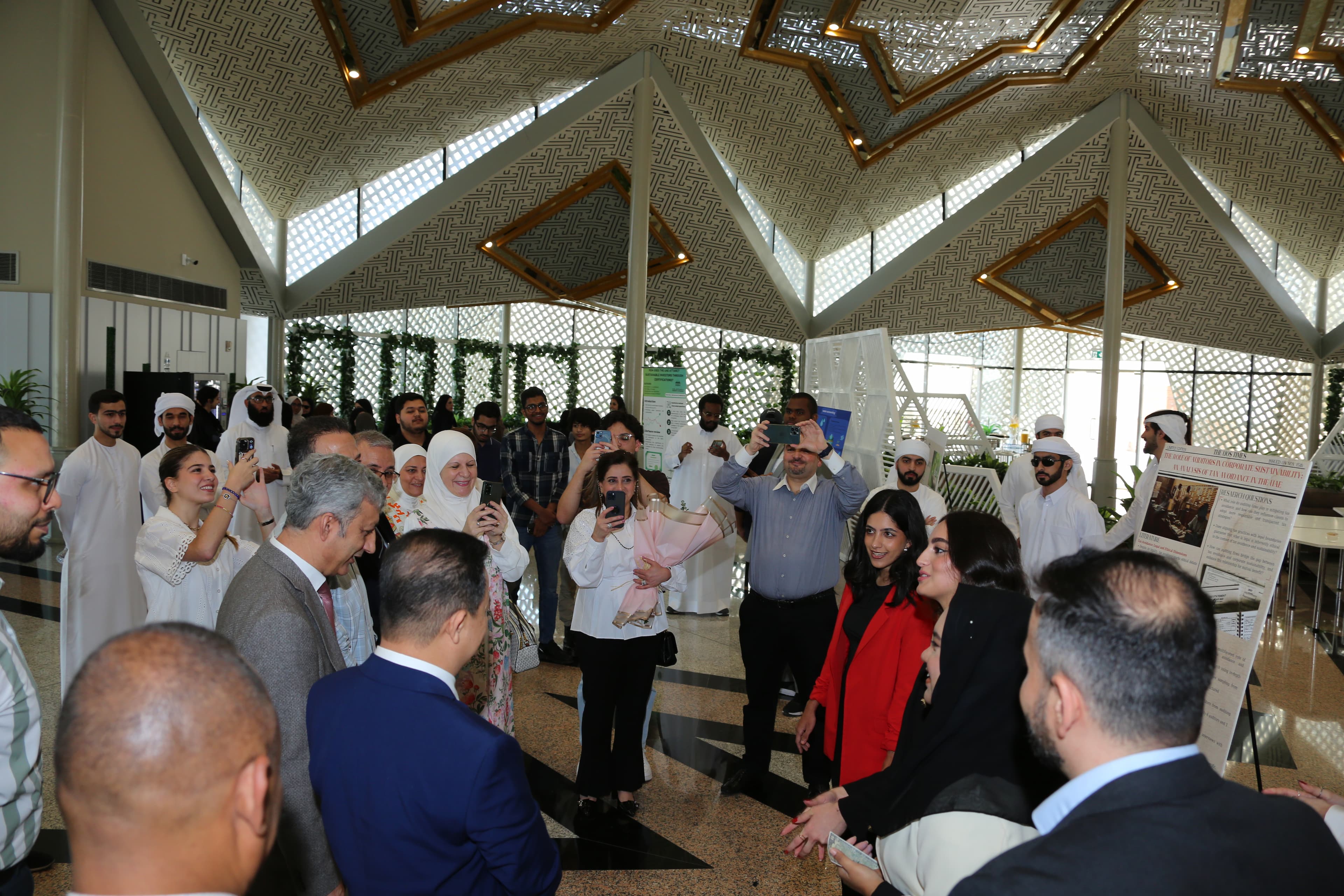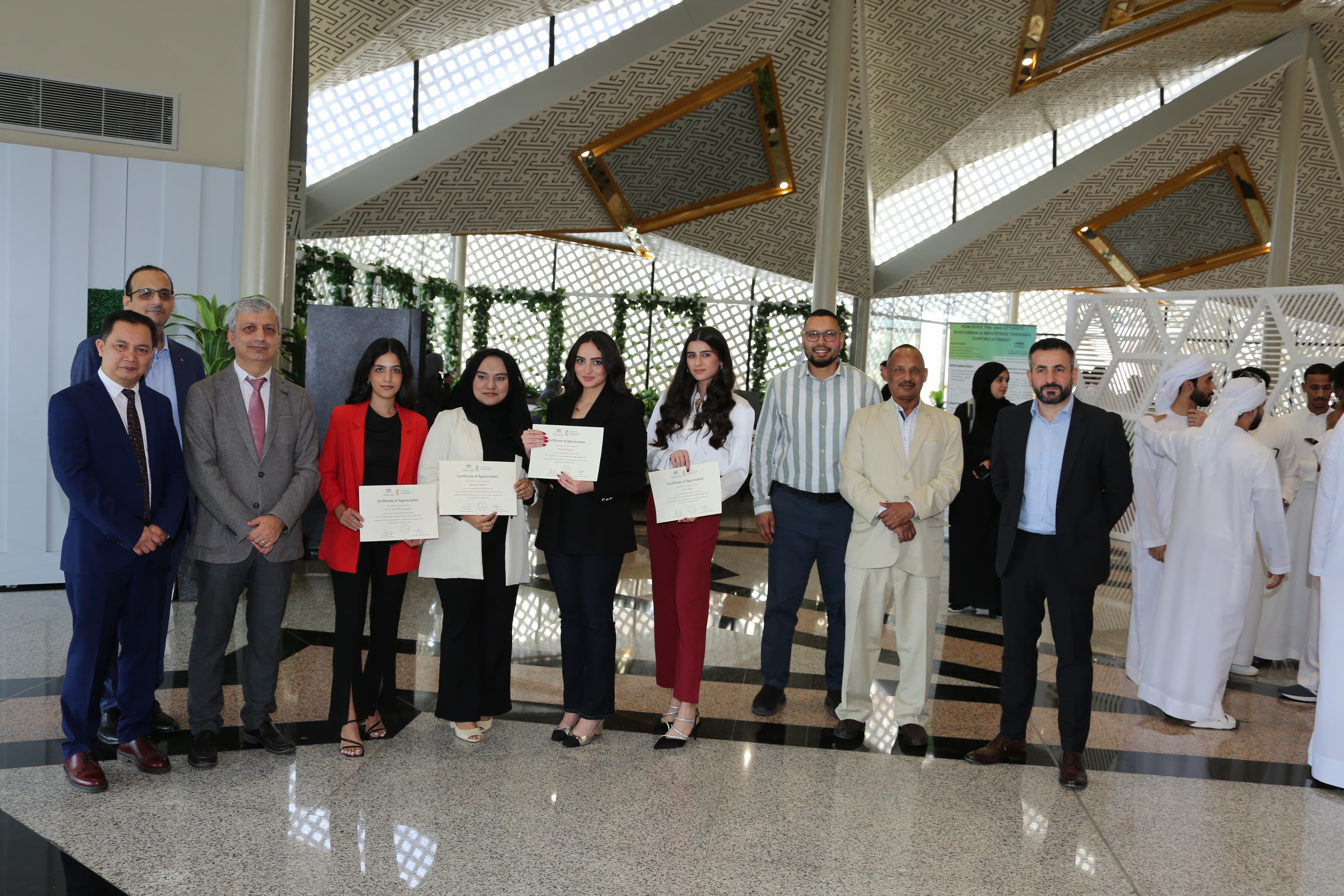 احتفلت كلية المحاسبة بطلابها الكبار في المحاسبة من خلال تنظيم معرض لمشاريعهم المحاسبية العليا. وكان الهدف من المعرض هو إبراز المهارات والمعارف التي اكتسبها الطلاب خلال دراستهم الجامعية. تمت خلال المعرض مناقشة سبعة موضوعات مستوحاة من مؤتمر الأمم المتحدة المعني بتغير المناخ (COP28)، بما في ذلك (المحاسبة وإدارة الطاقة في أعقاب مؤتمر الأمم المتحدة المعني بتغير المناخ (COP28)، ودور المدققين في استدامة الشركات: تحليل لتجنب الضرائب في دولة الإمارات العربية المتحدة، وفعالية محاسبة المياه في دولة الإمارات العربية المتحدة، ودور المدققون في التحقق من المطالبات البيئية والاجتماعية والحوكمة بعد مؤتمر الأطراف الثامن والعشرين). حضر المعرض أهالي أعضاء هيئة التدريس والطلاب بالكلية وأشرف عليه الدكتور محمد المحاميد أستاذ المحاسبة المساعد.
