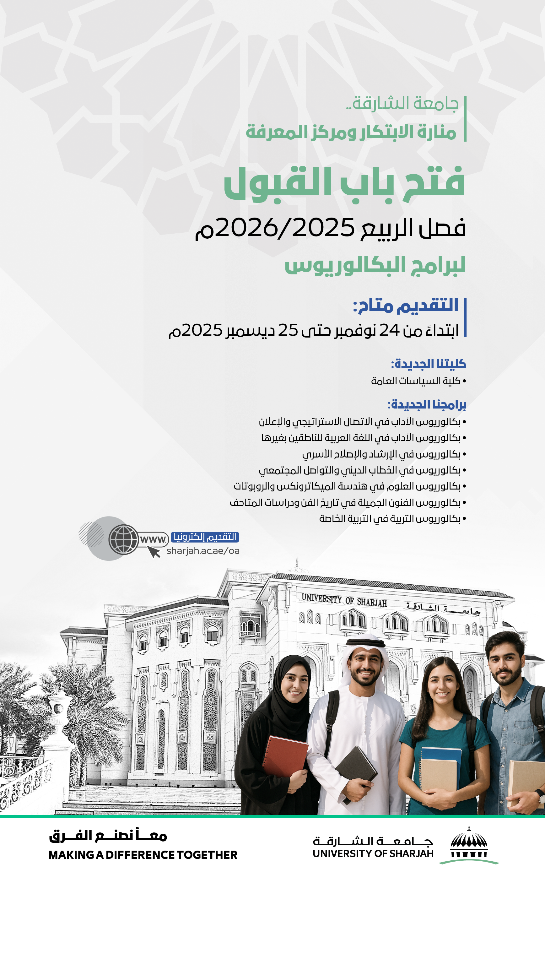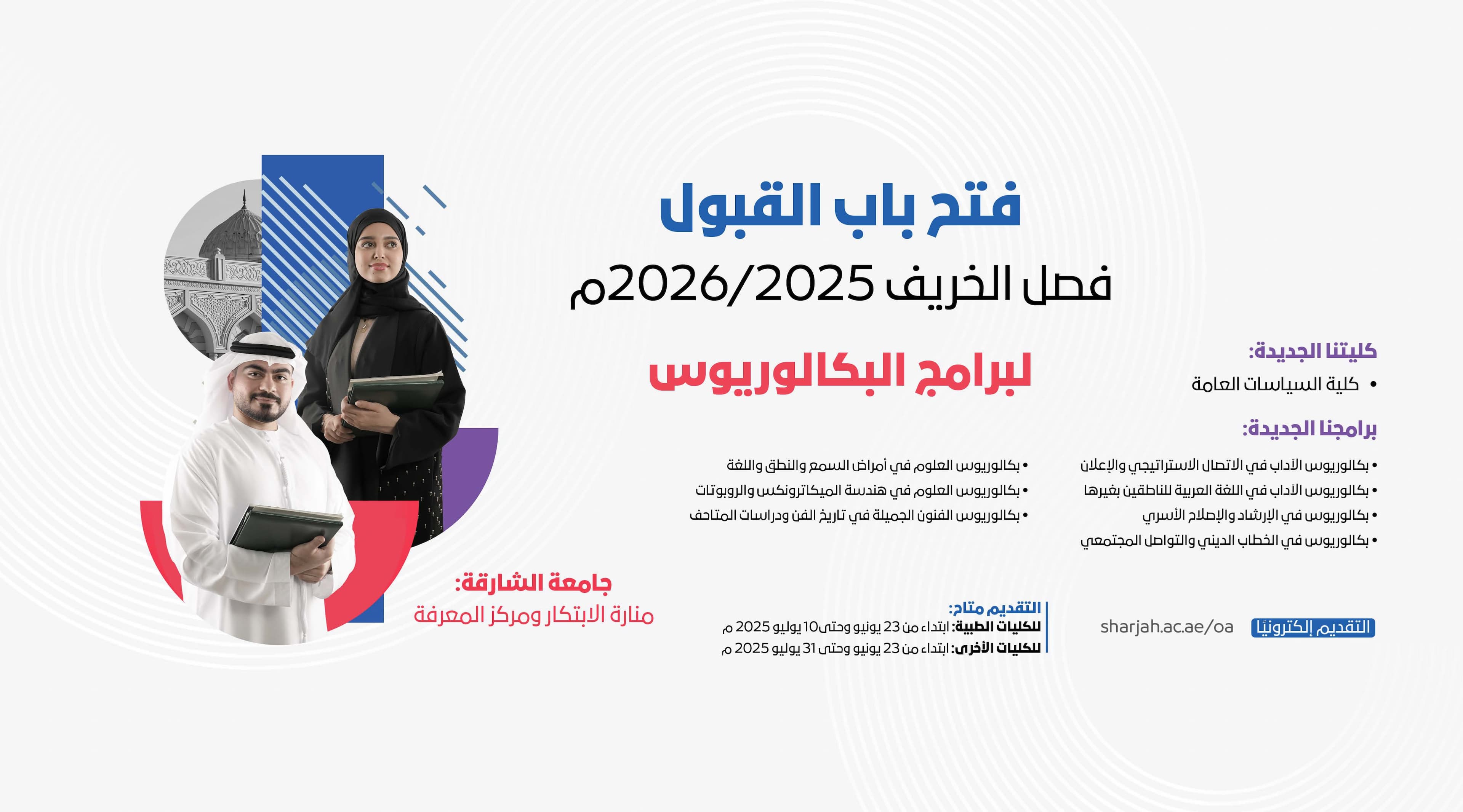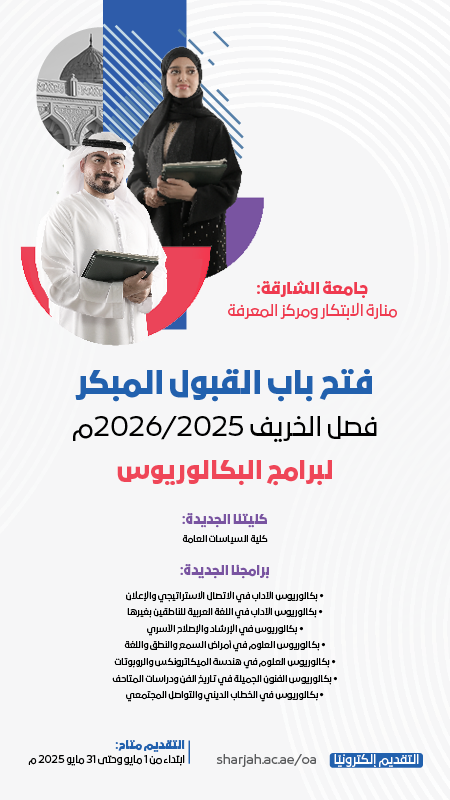 البريد الإلكتروني: admission@sharjah.ac.ae