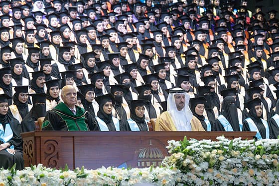 شهد سمو الشيخ سلطان بن أحمد بن سلطان القاسمي نائب حاكم الشارقة، رئيس جامعة الشارقة، صباح اليوم الأحد، في قاعة المدينة الجامعية، حفل تخريج طالبات درجة البكالوريوس بجامعة الشارقة البالغ عددهن 681 خريجة من مختلف الكليات.