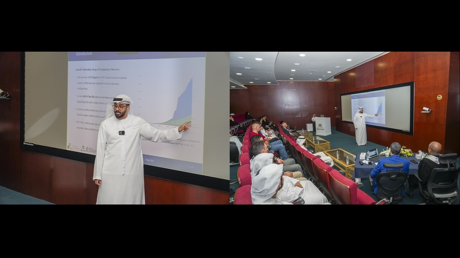 نوقشت بأكاديمية الشارقة لعلوم وتكنولوجيا الفضاء والفلك التابعة لجامعة الشارقة رسالة ماجستير للباحث عمار عيسى محمد تخصص علوم الفضاء والفلك بكلية العلوم بعنوان: " تحليل خصائص الأنظمة الكوكبية النجمية من حيث قابلية السكن والاستقرار المداري"، والتي أشرف عليها الأستاذ الدكتور أنطونيوس مانوساكيس أستاذ مساعد في قسم الفيزياء التطبيقية وعلم الفلك، وتكونت لجنة المناقشة من الأستاذ الدكتور غفار عطا المنان أستاذ في قسم الفيزياء التطبيقية وعلم الفلك بجامعة الشارقة ، والأستاذ الدكتور مشهور الوردات أستاذ الفيزياء الفلكية بجامعة الشارقة، ومدير الشؤون الأكاديمية بالأكاديمية ، والدكتور أحمد أبو شتال أستاذ مشارك من جامعة الحسين بن طلال في الأردن مناقشاً خارجياً.