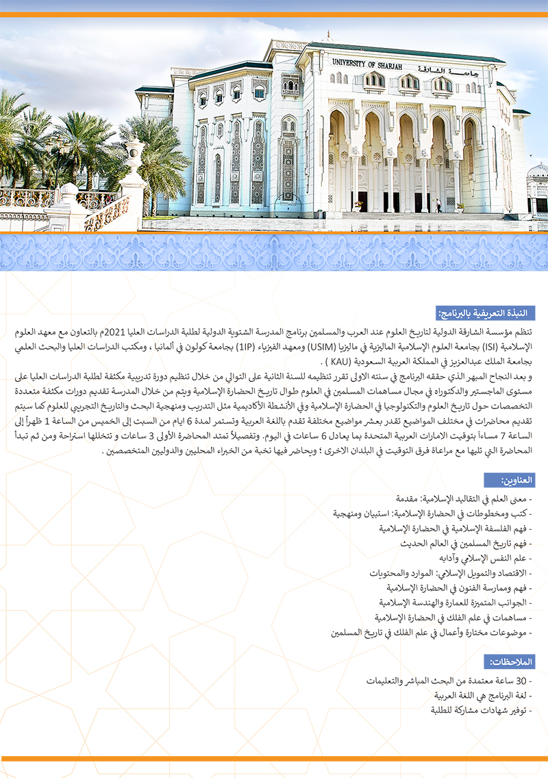 المدرسة الشتوية الدولية لطلبة الدراسات العليا 2021 - الدورة الثانية: التقاليد العلمية في الحضارة الإسلامية