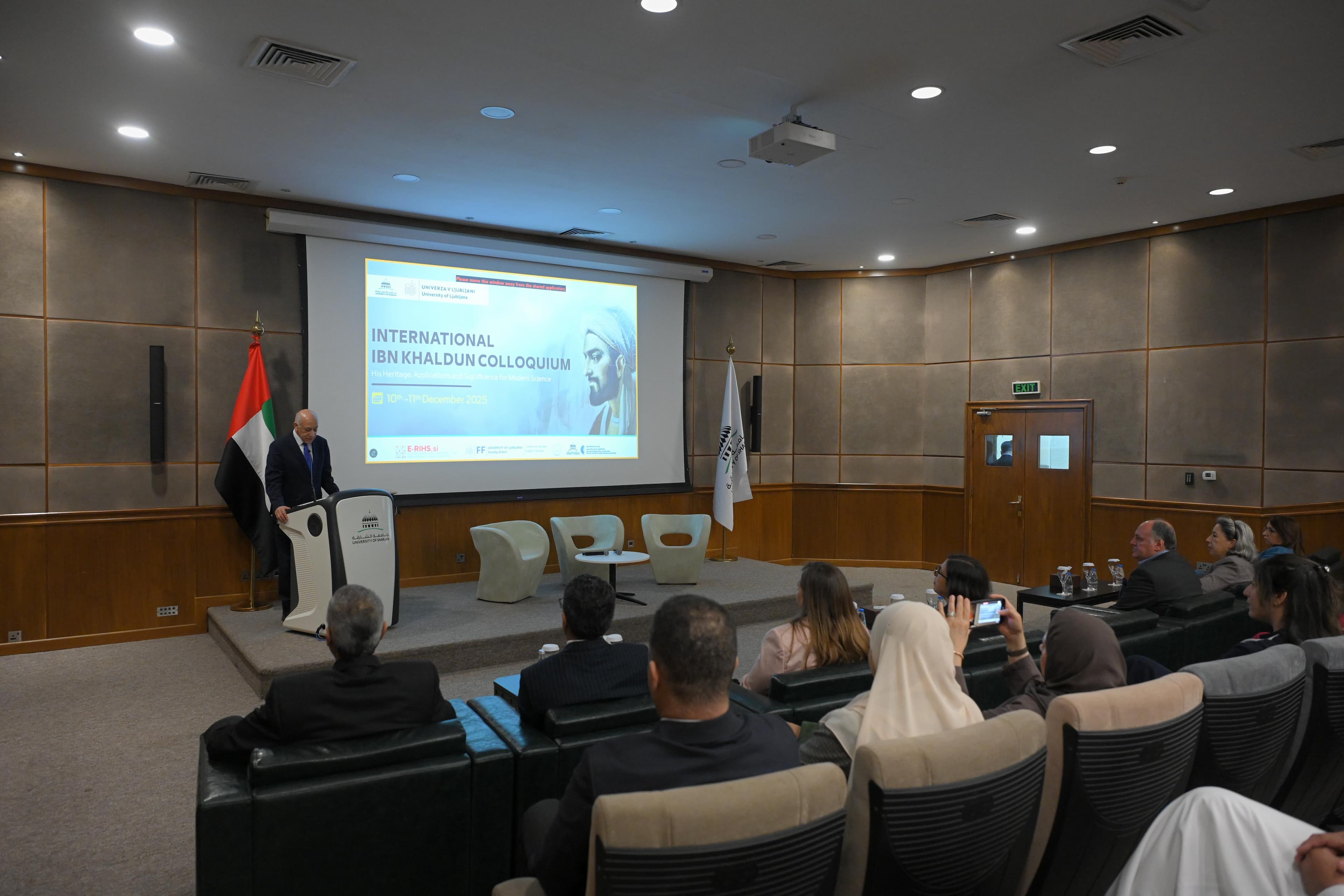 نظمت مؤسسة الشارقة الدولية لتاريخ العلوم عند العرب والمسلمين (SIFHAMS) بجامعة الشارقة، بالتعاون مع مركز دراسات الشرق الأوسط بكلية الآداب – جامعة ليوبليانا (سلوفينيا)، ندوة دولية حول نظريات ابن خلدون وتأثيراتها المعاصرة، وذلك على مدى يومين في مقر المؤسسة بجامعة الشارقة. يهدف الملتقى إلى تسليط الضوء على تراث ابن خلدون وفكره ونظرياته وأثره في العلوم الحديثة، إلى جانب إتاحة منصة للحوار العلمي بين الباحثين والعلماء من مختلف دول العالم حول تأثير منهجه الفكري في تطور المفاهيم العلمية، ونظريات الدولة، واستشراف آفاق التنمية المستقبلية.