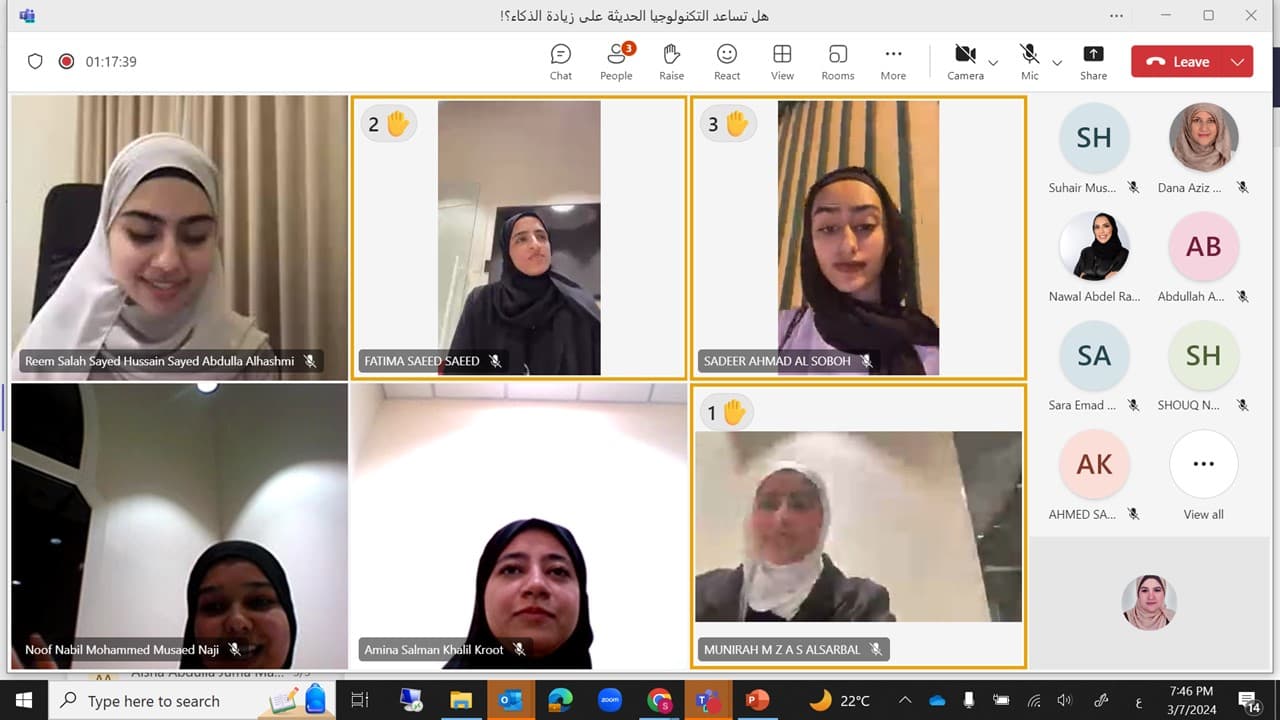 حيث تكون الفريق المؤيد من الطالبات: سدير أحمد الصبح من كلية الحوسبة والمعلوماتية، أمينة سلمان خليل من كلية العلوم الصحية ، وريم صلاح الهاشمي من كلية القانون